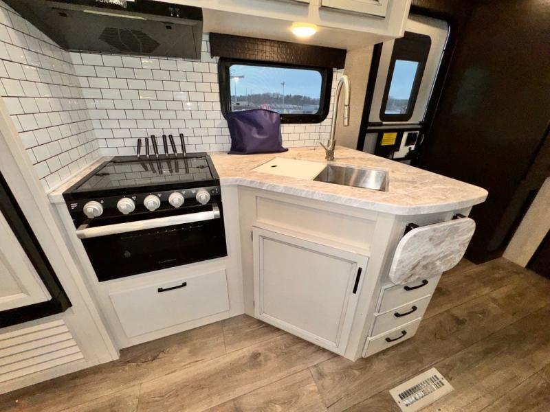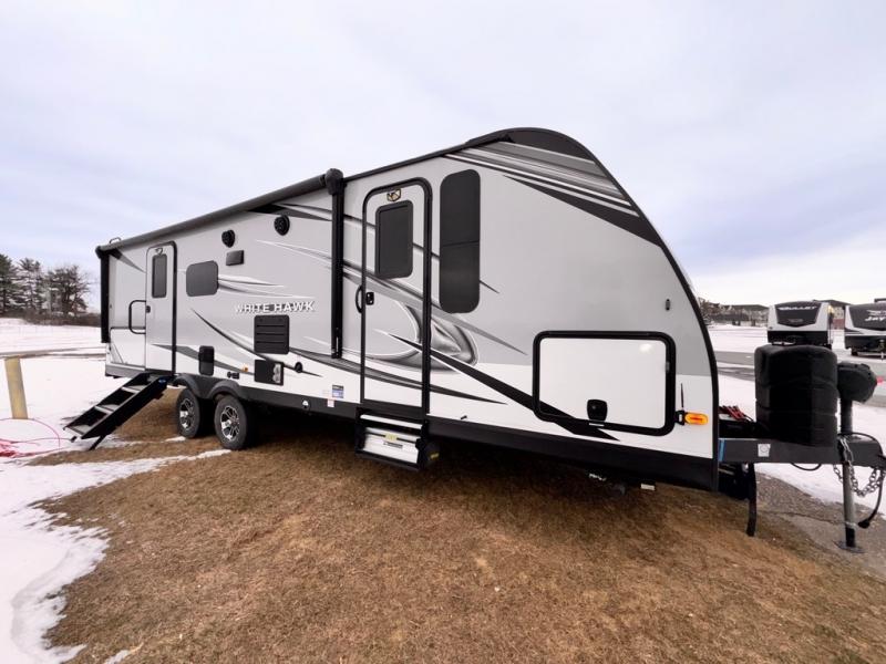 If you're wanting a lightweight travel trailer packed with convenience and luxury then look no further than these Jayco White Hawk travel trailers! Jayco uses the top-quality materials and innovative manufacturing techniques to create the superior StrongholdVBL vacuum-bond lamination, and the Magnum Truss Roof System for a 50% stronger roof than any other in the industry. The screwed construction creates a more firmly secured structure and the 2" x 2" vertical studs provide smoother edges for safer wiring to reduce the risk of electrical shorts. Each model comes with two mandatory packages to include extra luxurious features like the Furrion range, the kitchen skylight, and the outside shower. You will also enjoy the Climate Shield zero-degree tested weather protection, the JAYCOMMAND "Smart RV" system, and the MORryde StepAbove entry steps, plus there is even a roof-mount solar prep. The American-made Goodyear tires and Dexter axles with self adjusting brakes and galvanized steel wheel wells ensure you will arrive safely to each destination. Come explore these lightweight travel trailers today!