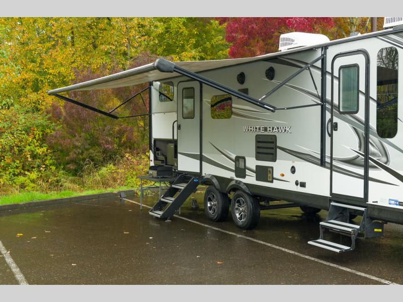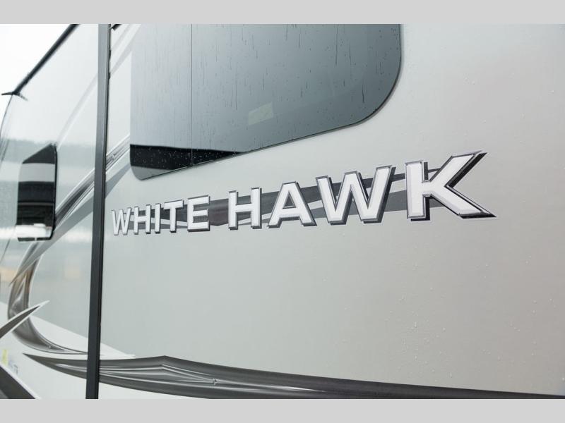 If you're wanting a lightweight travel trailer packed with convenience and luxury then look no further than these Jayco White Hawk travel trailers! Jayco uses the top-quality materials and innovative manufacturing techniques to create the superior StrongholdVBL vacuum-bond lamination, and the Magnum Truss Roof System for a 50% stronger roof than any other in the industry. The screwed construction creates a more firmly secured structure and the 2" x 2" vertical studs provide smoother edges for safer wiring to reduce the risk of electrical shorts. Each model comes with two mandatory packages to include extra luxurious features like the Furrion range, the kitchen skylight, and the outside shower. You will also enjoy the Climate Shield zero-degree tested weather protection, the JAYCOMMAND "Smart RV" system, and the MORryde StepAbove entry steps, plus there is even a roof-mount solar prep. The American-made Goodyear tires and Dexter axles with self adjusting brakes and galvanized steel wheel wells ensure you will arrive safely to each destination. Come explore these lightweight travel trailers today!