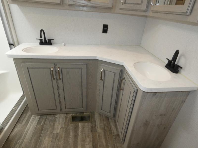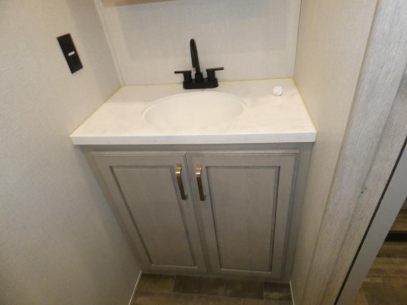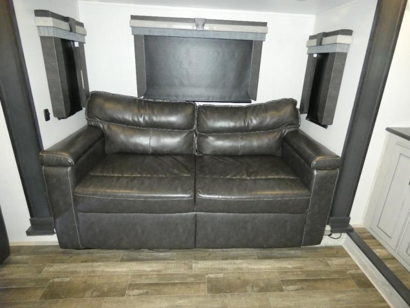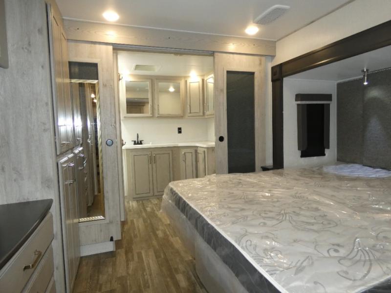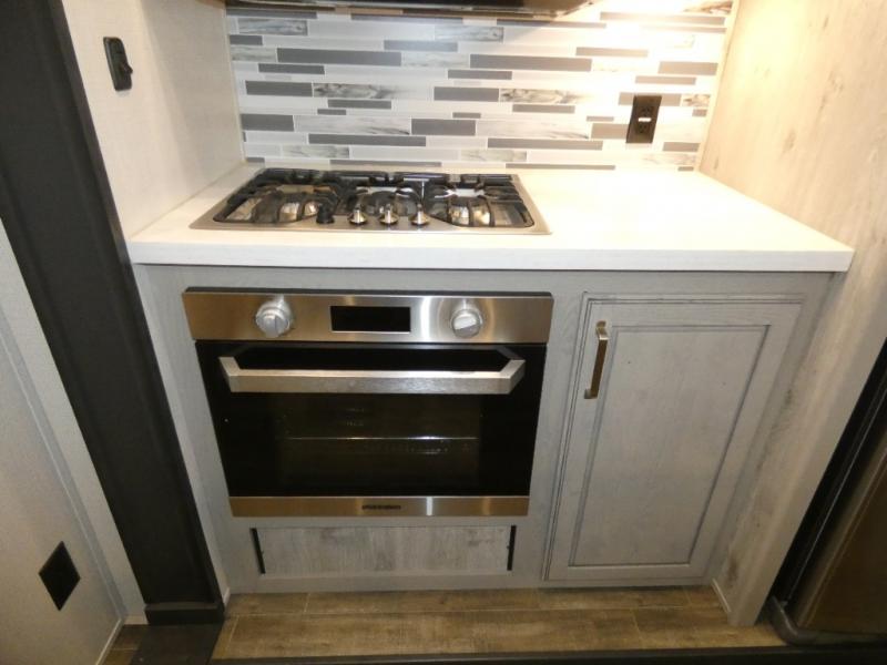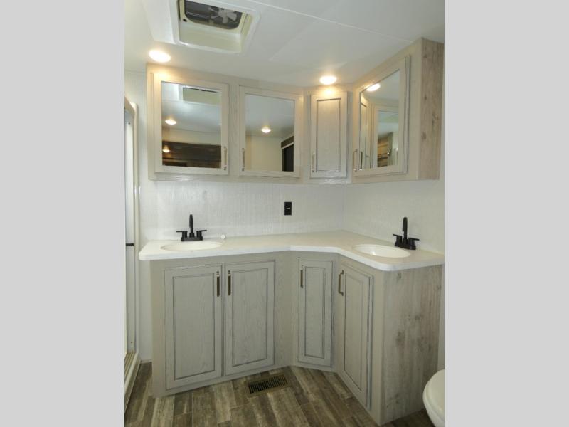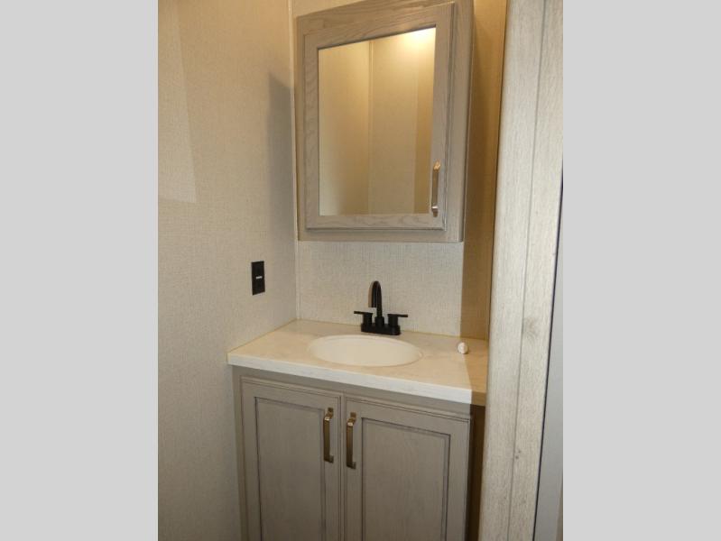 When you choose an Alpine fifth wheel by Keystone RV, you are choosing luxury, innovation, modern style and so much more! The stunning Aspen Oak cabinetry with contrasting Renewed Oak accents and vintage wire mesh glass inserts, the polished natural stone solid surface countertops, and the varied plank width resilient flooring throughout are just a few highlights inside. Some other noteworthy features include the high-fidelity video and audio to withstand road vibration with three, separately controlled sound zones with smartphone app capability, and the iN-Command system with oversized touchscreen monitor giving you control of the slides, awnings, and HVAC. Each Alpine is built with 100" wide body construction, a dual 15,000 BTU Whisper Quiet A/C system, a Nautilus On-Demand water heater for instant, endless hot water, and insulated wrapped tanks with 12 volt heat pads allowing you to travel every season.