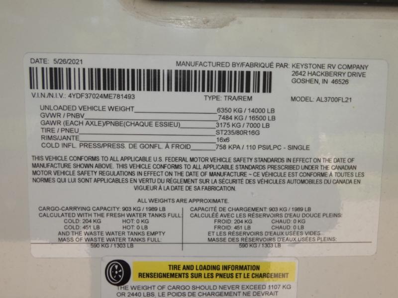 Used 2021 Keystone RV Alpine 3700FL Fifth Wheel