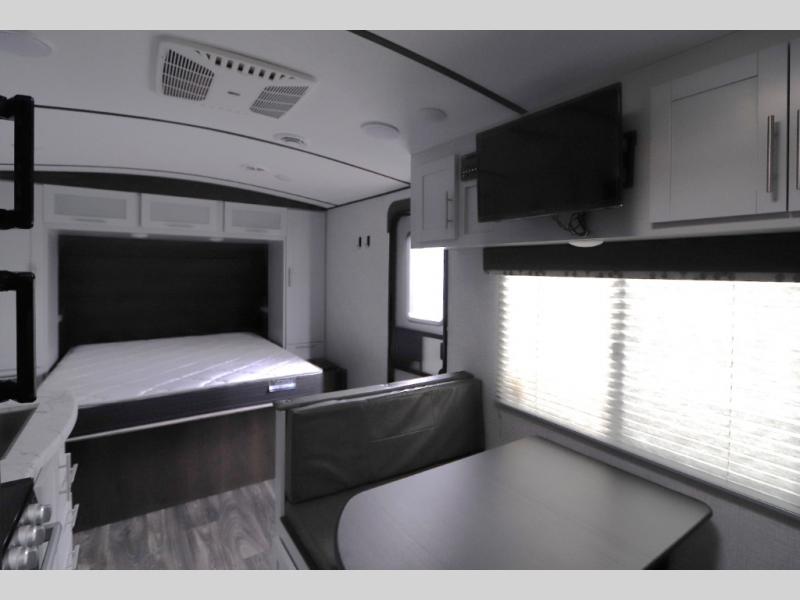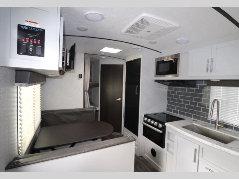 Each Keystone Bullet travel trailer is built with Hyper Deck flooring that provides a high-performance water-resistant RV floor that is more resilient, stronger, and lighter than traditional laminated wood construction, and color-coded unified wiring which is different from conventional RV wiring because it has easy-to-trace circuits and clearly labeled wiring. The in-floor heating ducts distribute heat the way it should be done, and the Tru-Fit slide construction on slide models minimizes structural stress and resists leaking. The interior will continue to impress you with the Coastal Cottage painted hardwood cabinet doors, the vaulted ceilings, and the LED reading lights above the bed to mention a few. Choose your favorite, and start camping in comfort at an affordable price without missing any of the impressive features you want!