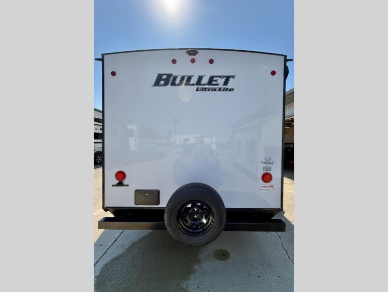 Load up your family or friends and head out to a quiet retreat at your favorite campground with this Bullet travel trailer by Keystone. Before you head inside, check out the outdoor kitchen which features a two-burner range top and mini refrigerator that will keep your drinks or snacks cool. In the evening, you can sit underneath the 19' electric awning with LED light strip and enjoy the scenic sunset. Inside this trailer you will love how open and spacious the kitchen and living area feel with the single slide that includes the Dream dinette and theater seats. The large bathroom is in the rear of this trailer and includes linen storage, and the private bedroom is in the front and includes a space saving sliding door and plenty of storage.