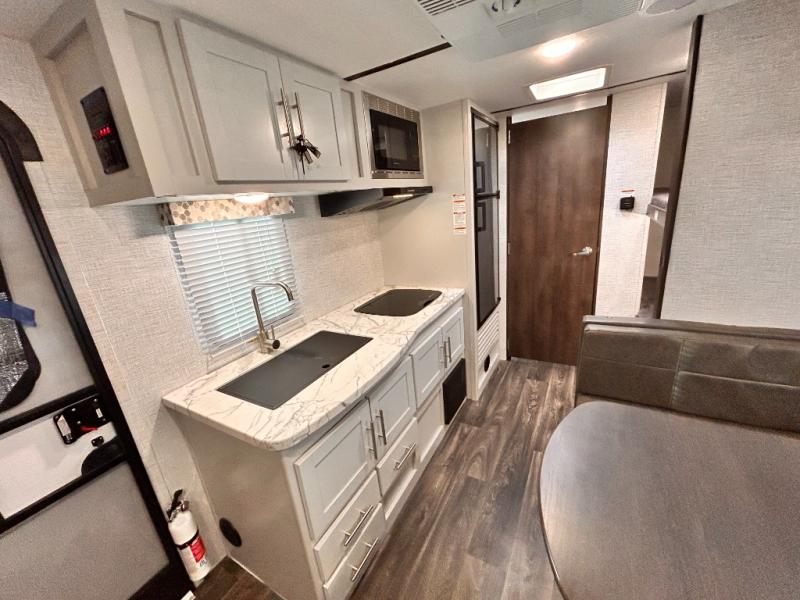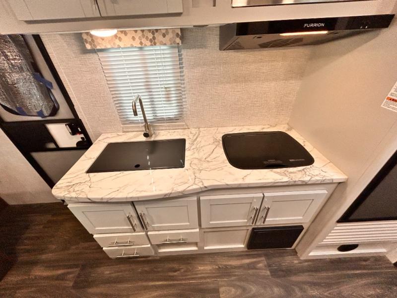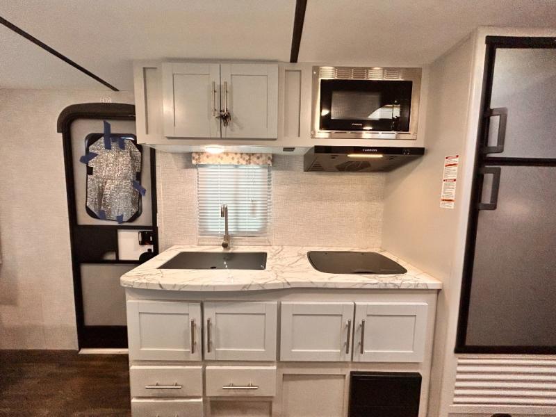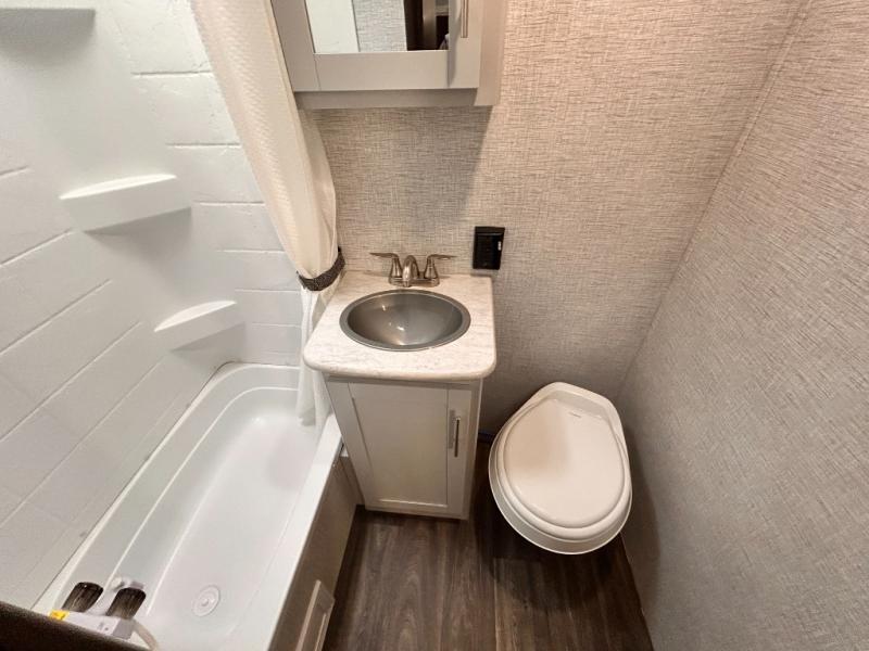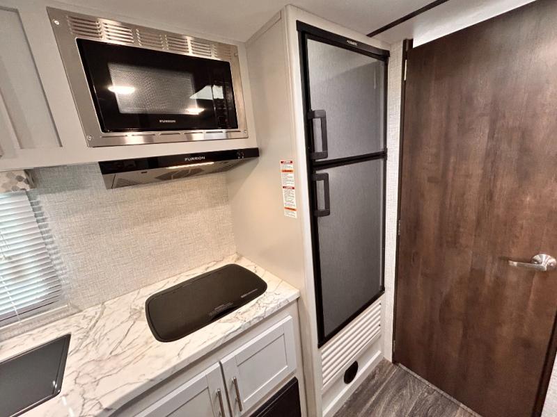You'll be able to easily pack up and go without much effort in the Keystone Bullet Crossfire travel trailer! These nimble trailers offer you the features your family wants without too much burden on your travel plans. The exterior is formed with a NORCO HSLA steel/automotive deposition coated frame assembled with huck bolts, and the fully walkable roof has a one-piece TPO membrane. The Dexter E-Z Lube axles keep your trailer running smoothly each and every time, and the four electric stabilizer jacks will keep your trailer even on rocky ground. Because these trailers have been prepped for solar, you'll be able to create an off-grid oasis, and the outside hot/cold shower with showerhead will allow you to hose down your outdoor equipment before returning it to the pass-through storage with magnetic door catches.