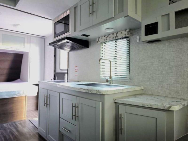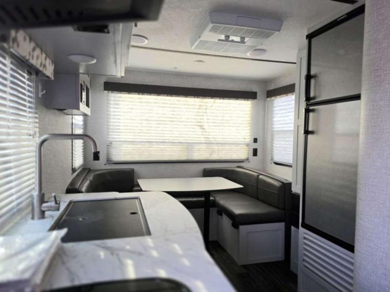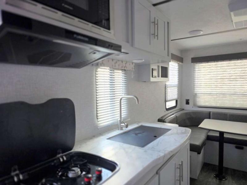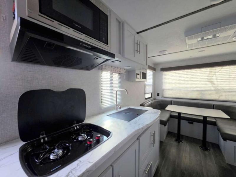 If you have been looking for a starter RV or you are upgrading your current trailer, this Bullet Crossfire travel trailer will meet your needs. From the front queen-size bed to the rear U-shaped dinette, you will find everything you need for a fun weekend or month-long camping adventure. The kitchen is packed out with amenities like the microwave, two-burner cooktop, and 6-cubic foot refrigerator. The kitchen even includes a large pantry for you to store all of your favorite spices and snacks, and the full bathroom gives you your own place to clean up after a messy trek into the woods.