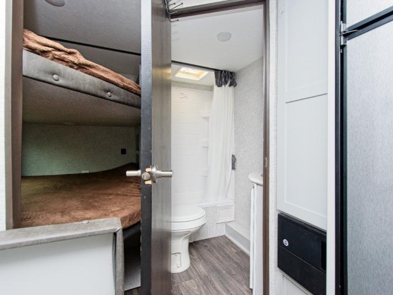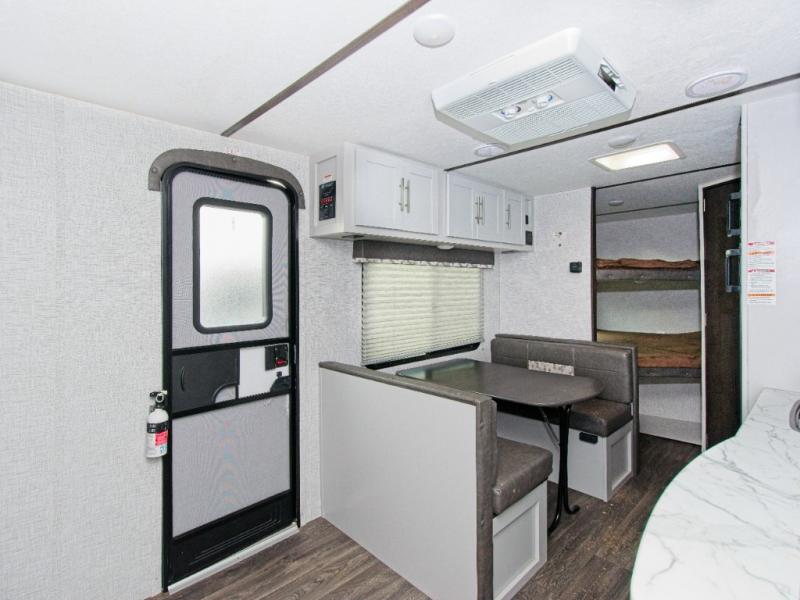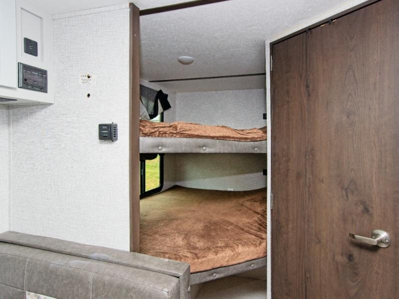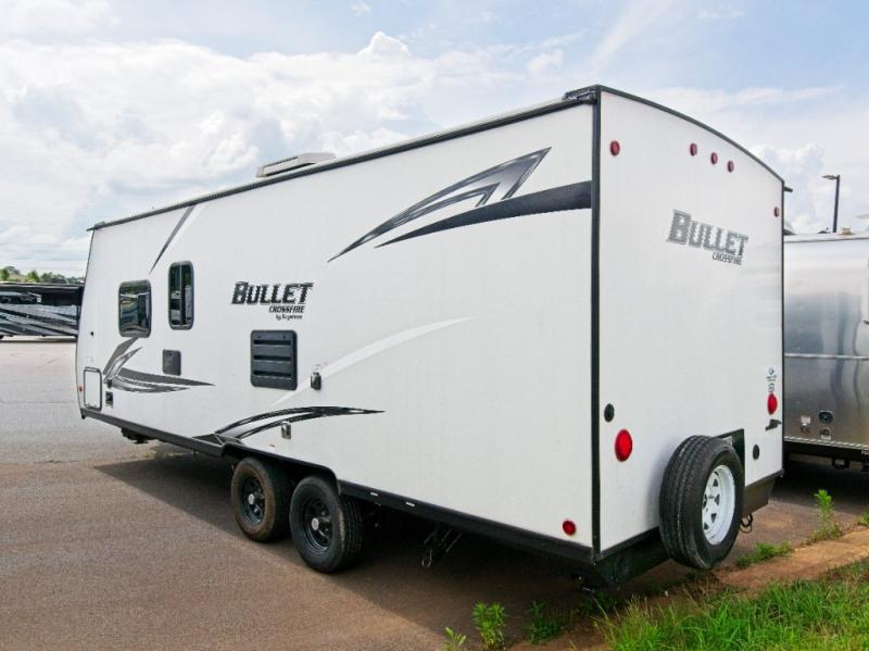 Experience effortless travel and outdoor convenience with the Bullet Crossfire travel trailer, featuring double-size bunks and a fully walkable roof for durability.