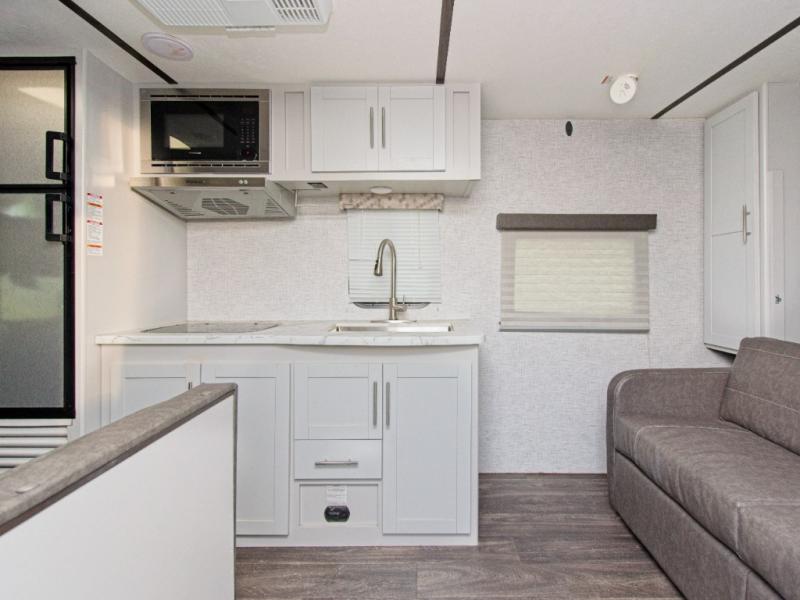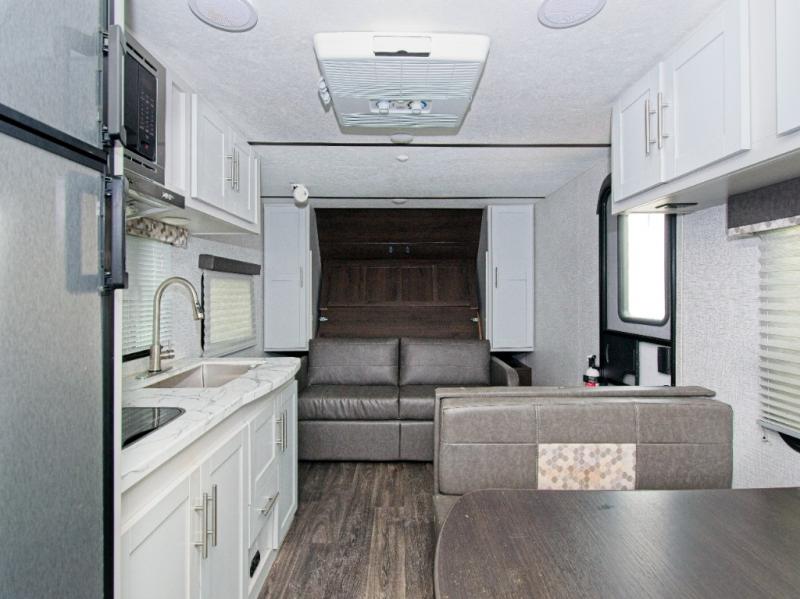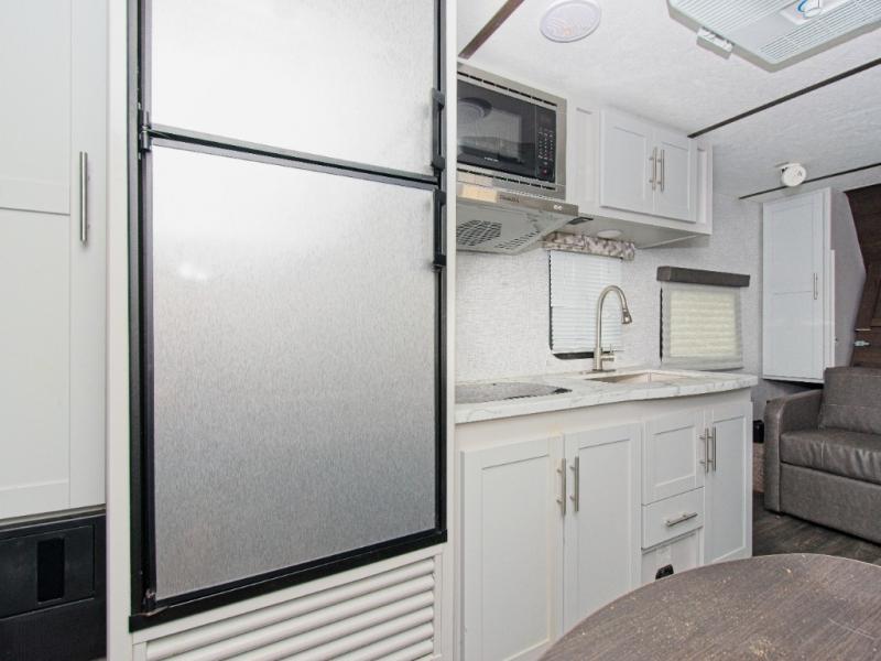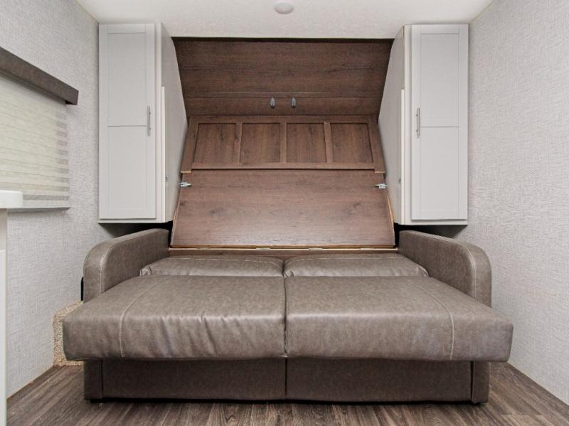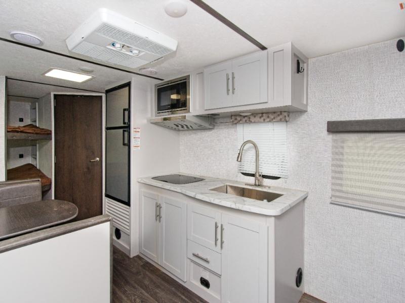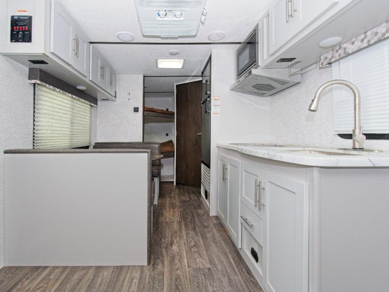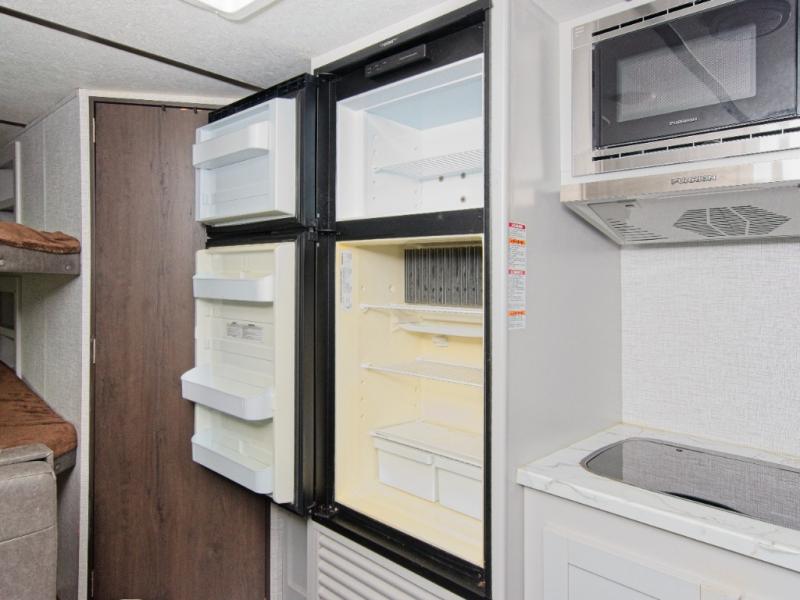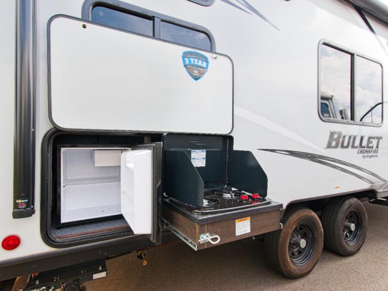For memorable camping trips with family or friends, the Bullet Crossfire travel trailer is your perfect choice. The double-size bunks offer a cozy spot for kids or friends to relax during the day and sleep at night, while the Murphy bed at the front ensures a comfortable night's rest. Prepare delicious meals in the full interior kitchen, and keep drinks handy in the outdoor refrigerator for easy access while enjoying the outdoors.