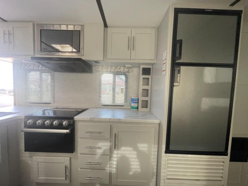 The hardest decision you will have to make with this Bullet Crossfire travel trailer is where to take it! You will enjoy a good night's rest each night on the queen bed in the front private bedroom which also has a laundry chute, and the kids or your friends will enjoy a good night's rest on the double-size bunks, one of which is a flip-up bunk for added storage. The kids can even bring a friend or two to tag along and sleep on the 68" tri-fold sofa or even the booth dinette when you're not using it to enjoy your meals or play card games. The kitchen has everything you will need to whip up a delicious home-cooked meal as well as an entertainment center and a pantry/closet to use as you wish. Everyone can freshen up in the rear corner bathroom with the tub/shower and power vent fan to get rid of any unwanted steam!