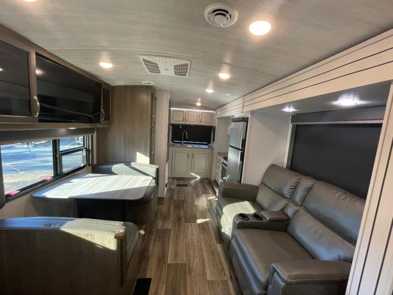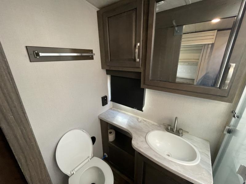 You’ll love how Keystone blends residential-style design with practical RV functionality. From the moment you step inside, the Cougar 22MLS feels open, warm, and inviting. The kitchen and living space are designed for real use—whether you’re cooking meals, relaxing after a day of adventure, or entertaining friends at the campground. The private front bedroom provides a quiet retreat, while ample storage throughout ensures you can bring everything you need without feeling cramped.