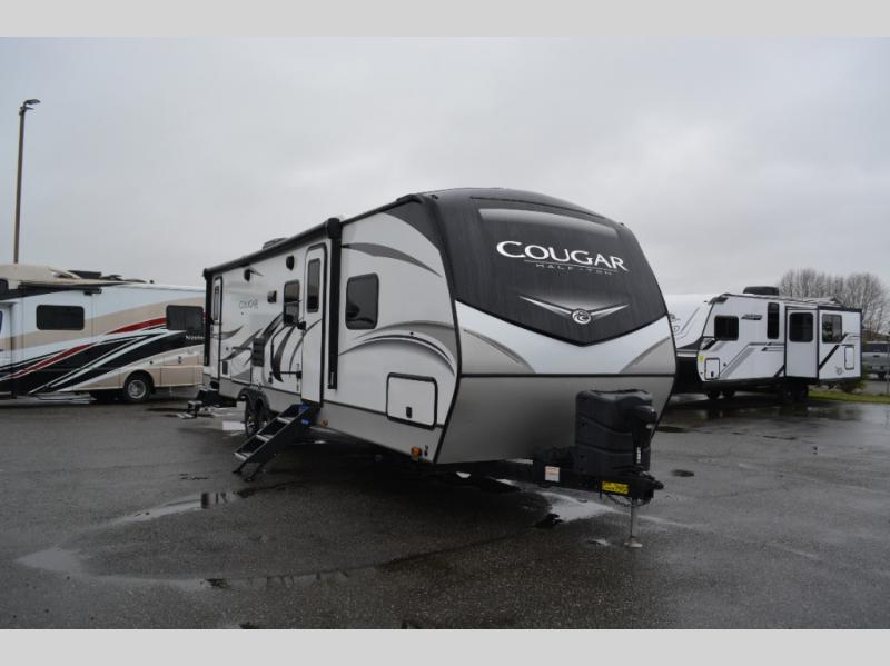 The Keystone Cougar Half-Ton fifth wheel and travel trailers are known as one of America's favorites for a reason! Some of those reasons are the exclusive features that come from Keystone, like the preparations for 4G and Wi-Fi, the in-floor heating ducts, and the Hyper Deck flooring. The Cougar Half-Ton has a Climate Guard protection package to keep you safe during inclement weather, and you'll also find an iN-Command Generation 3 with global connect. Use the 21" Furrion range with Piezo ignition to create all of those familiar meals from home, and add on the optional Off The Grid Solar Camping Package that comes with a roof-mounted solar panel, 30 AMP solar charging system, 2,000W pure sine inverter, and four inverted outlets.