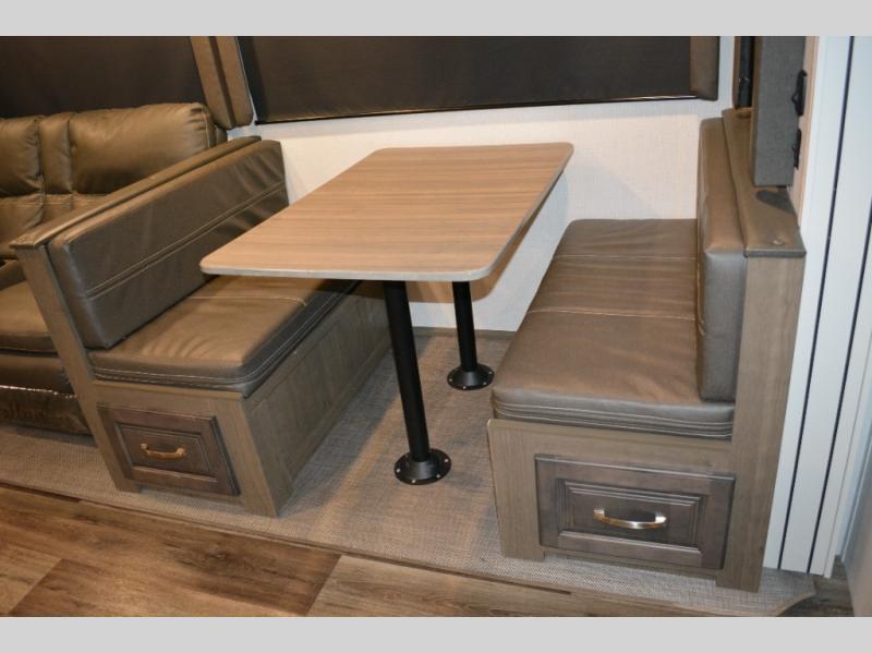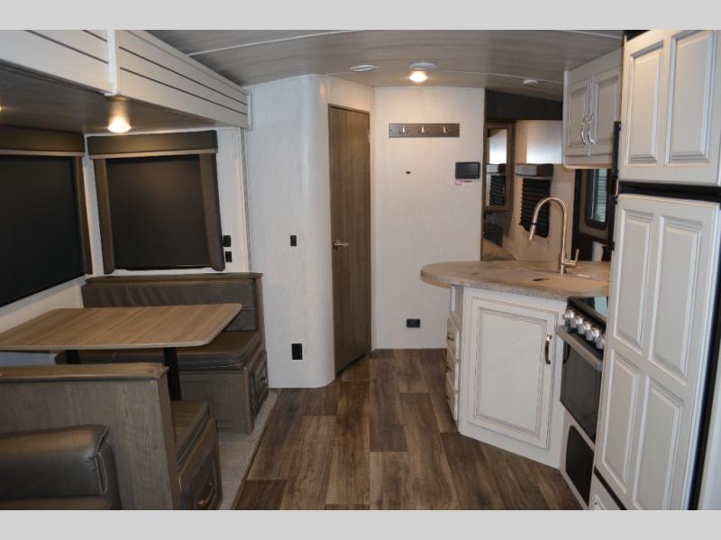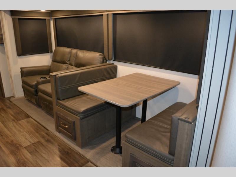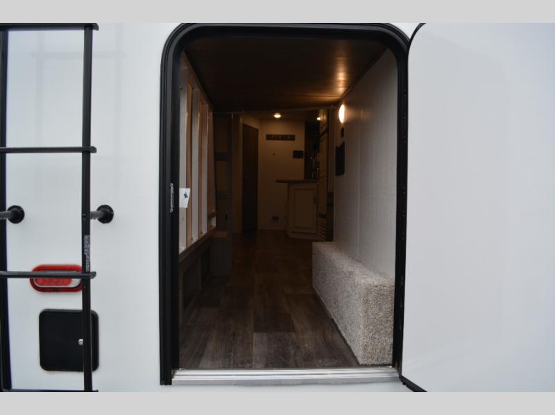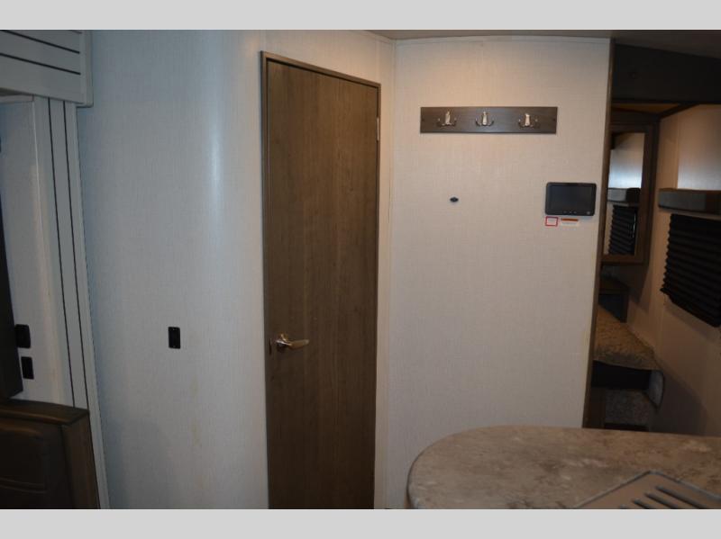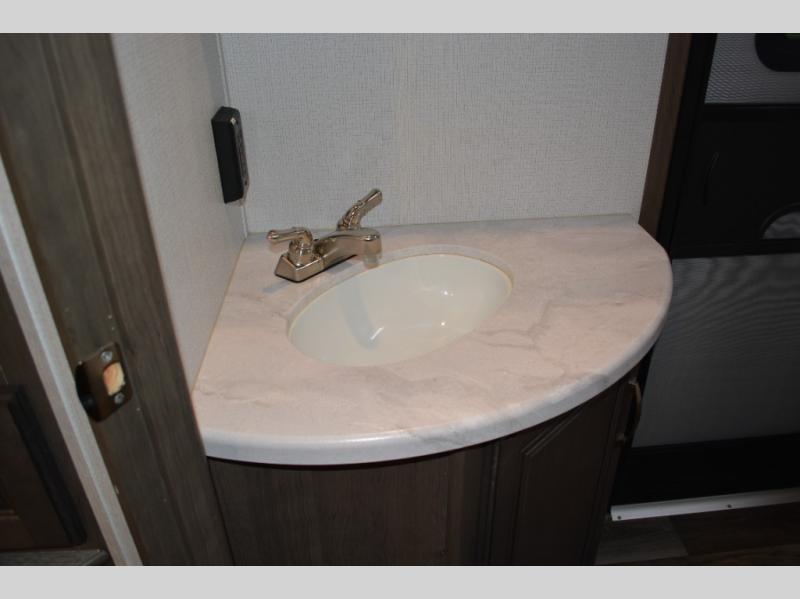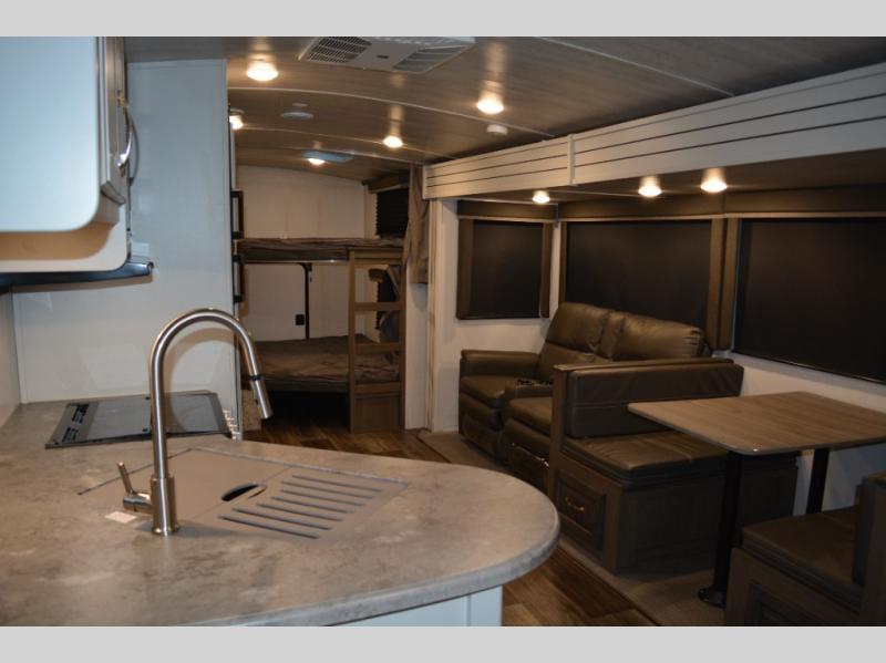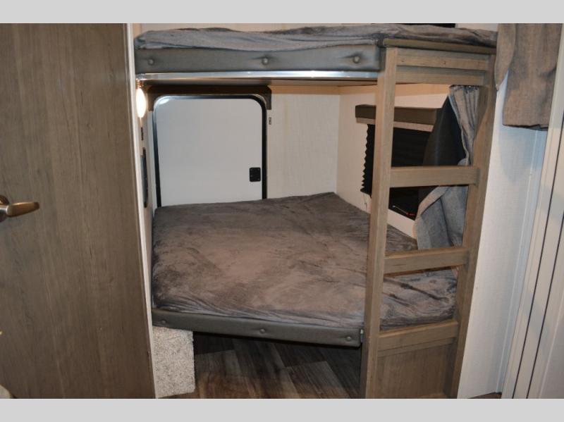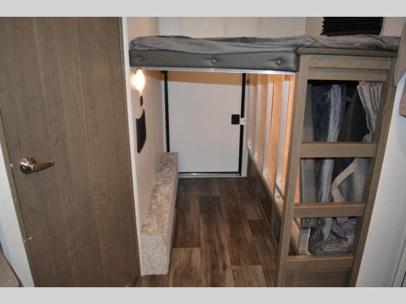 There are so many reasons to love this Cougar Half-Ton travel trailer! One of the reasons you'll love it is because it can sleep nine people comfortably each night with the double-size bunks, 68" tri-fold sleeper sofa, booth dinette, and king-size bed. Another reason that this trailer will be one of your favorites is that there is a second entry door that leads directly into the rear bathroom so that you don't have to trample all throughout the interior when you need to go.