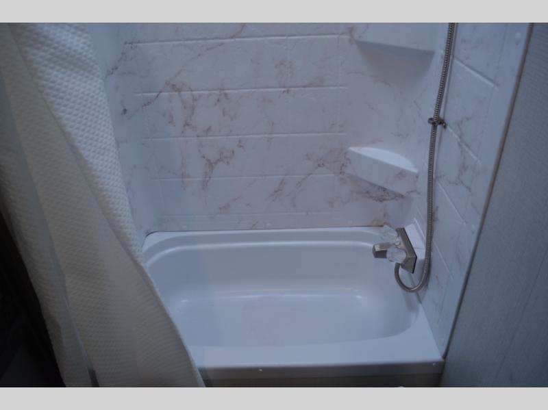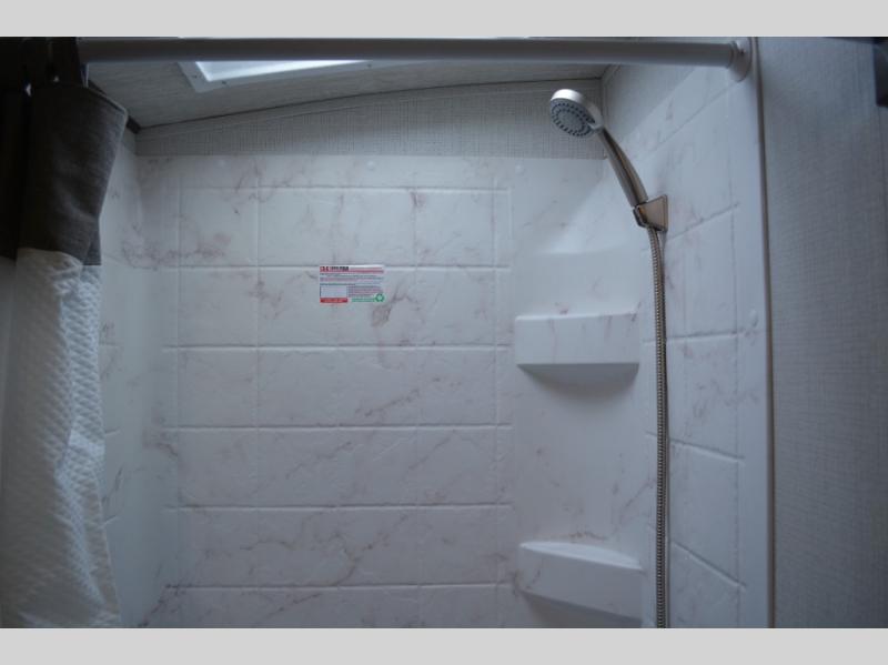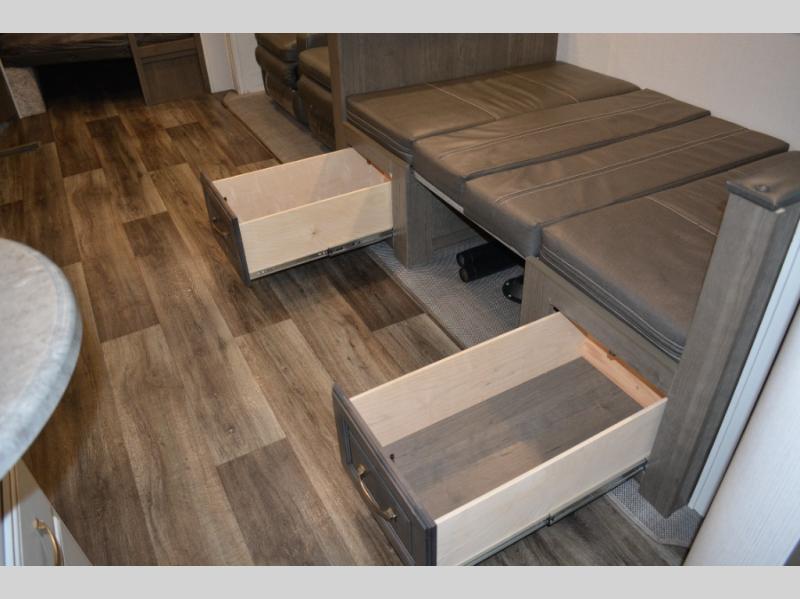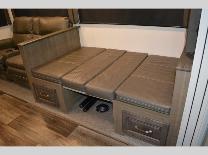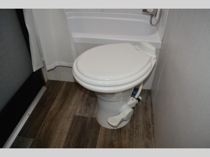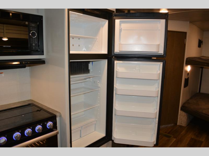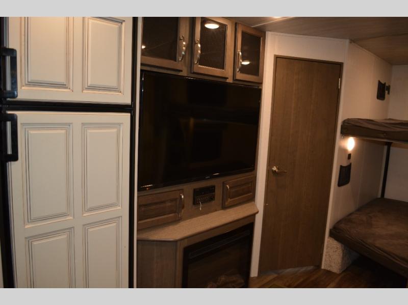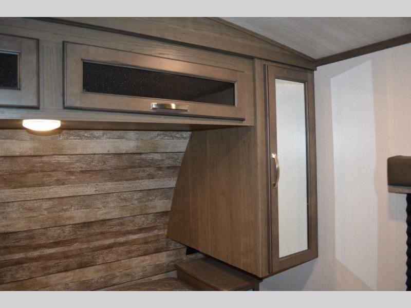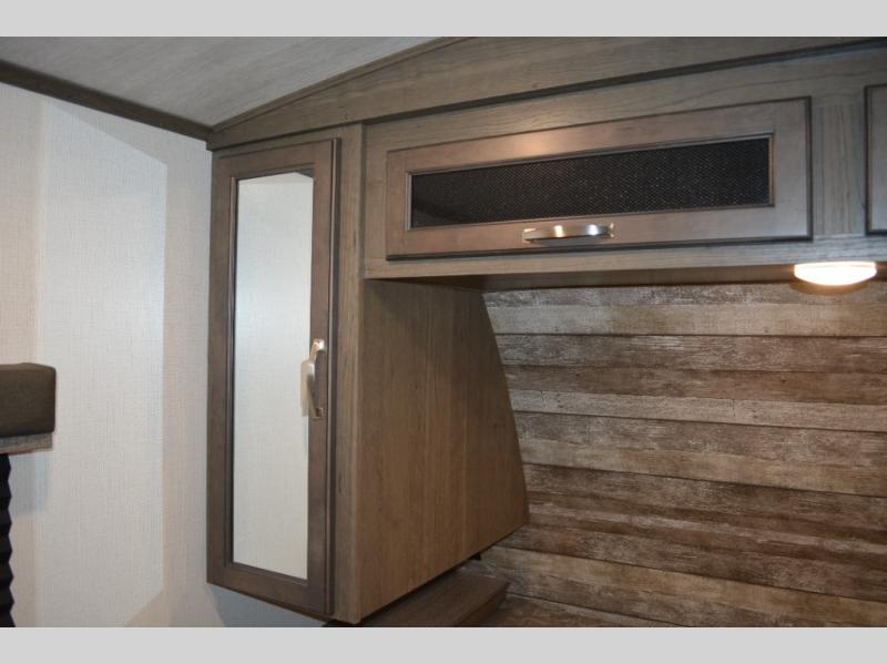 There are so many reasons to love this Cougar Half-Ton travel trailer! One of the reasons you'll love it is because it can sleep nine people comfortably each night with the double-size bunks, 68" tri-fold sleeper sofa, booth dinette, and king-size bed. Another reason that this trailer will be one of your favorites is that there is a second entry door that leads directly into the rear bathroom so that you don't have to trample all throughout the interior when you need to go.