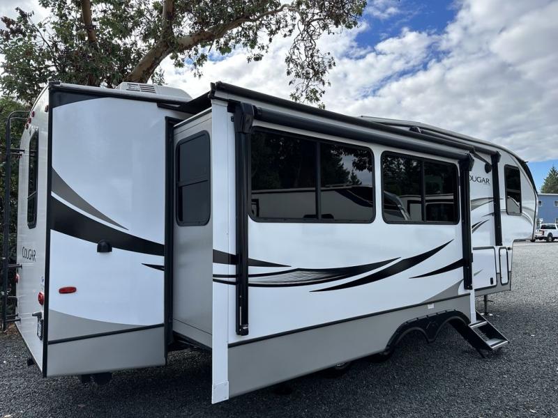 The Keystone Cougar Half-Ton fifth wheel and travel trailers are known as one of America's favorites for a reason! Some of those reasons are the exclusive features that come from Keystone, like the preparations for 4G and Wi-Fi, the in-floor heating ducts, and the Hyper Deck flooring. The Cougar Half-Ton has a Climate Guard protection package to keep you safe during inclement weather, and you'll also find an iN-Command Generation 3 with global connect. Use the 21" Furrion range with Piezo ignition to create all of those familiar meals from home, and add on the optional Off The Grid Solar Camping Package that comes with a roof-mounted solar panel, 30 AMP solar charging system, 2,000W pure sine inverter, and four inverted outlets.