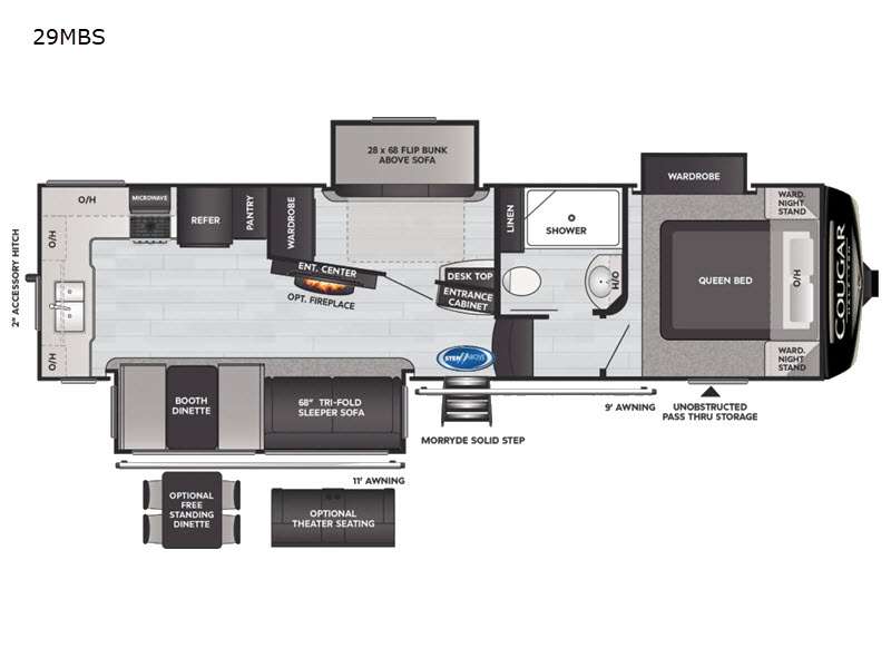 Keystone Cougar Half-Ton fifth wheel 29MBS highlights:
