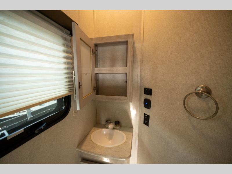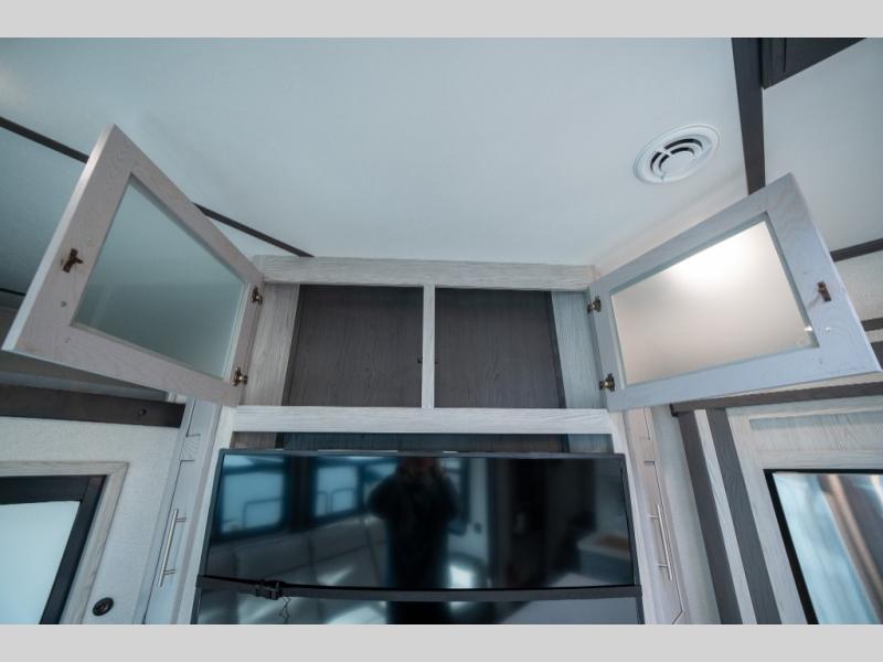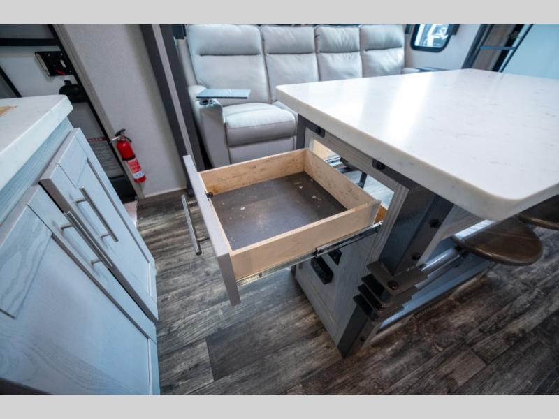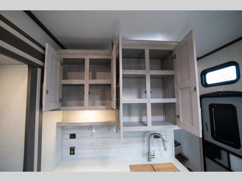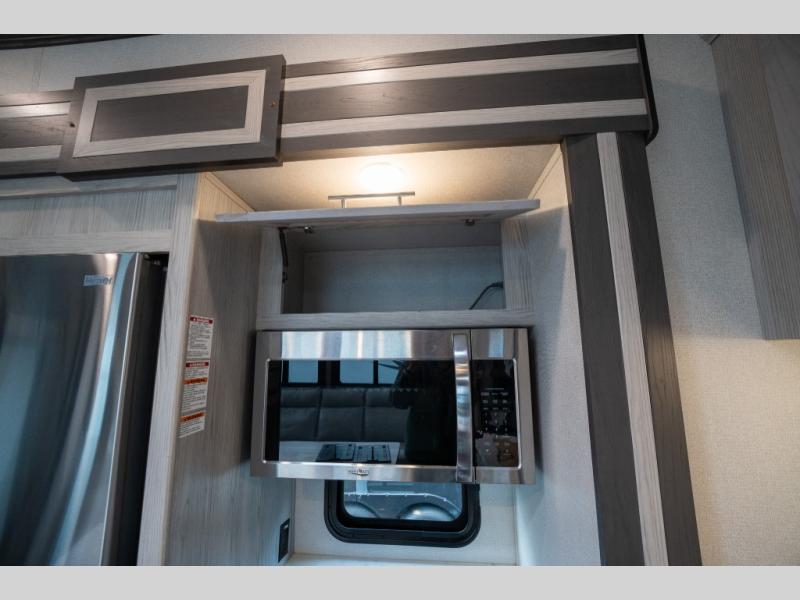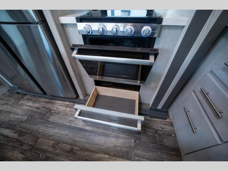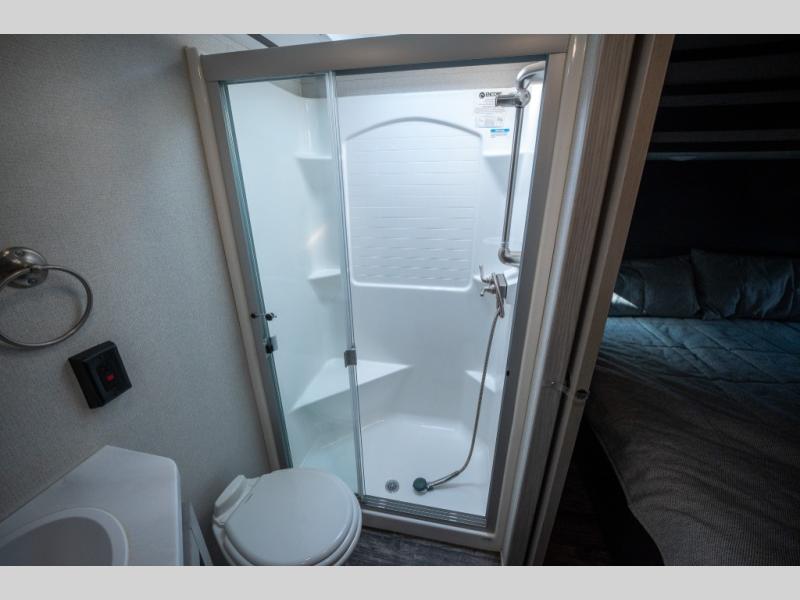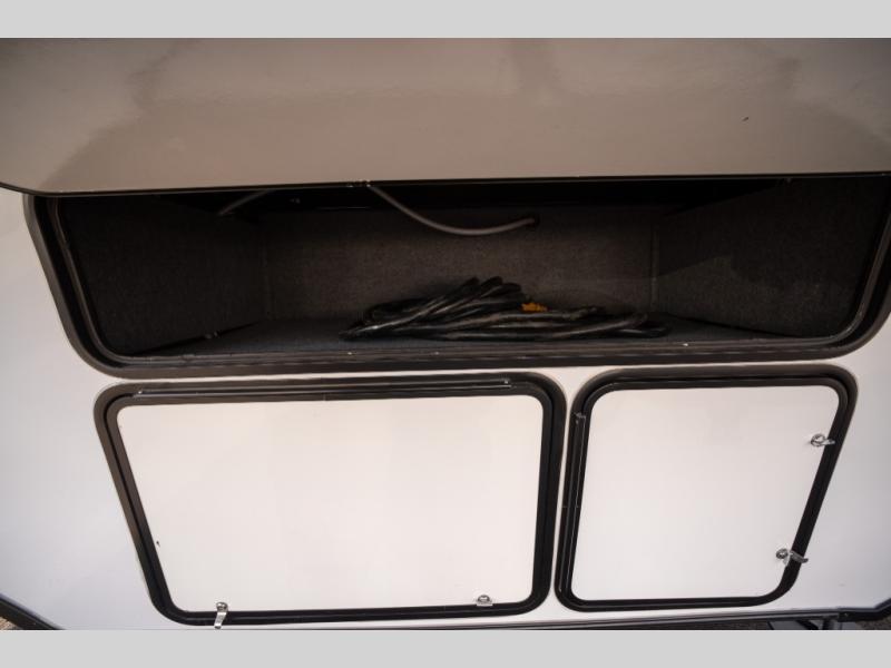 Enjoy open living spaces and convenient features in this spacious toy hauler. The 11' separate garage includes its own exterior entrance door, a loft with a bunk mat, plus a half bath for guests. You can comfortably sleep eight people with the added dual opposing sofas and a top queen bed, and you'll find three LED TV's throughout for your entertainment. The main living area includes a table with swing out stools the kids will love, and the two pantries can hold all the dry goods and snacks. The dual entry full bath will create a front master suite that will feel just like home. Here, you'll enjoy your own LED TV, a dresser and a master closet, plus a space to add an optional washer and dryer if you choose!