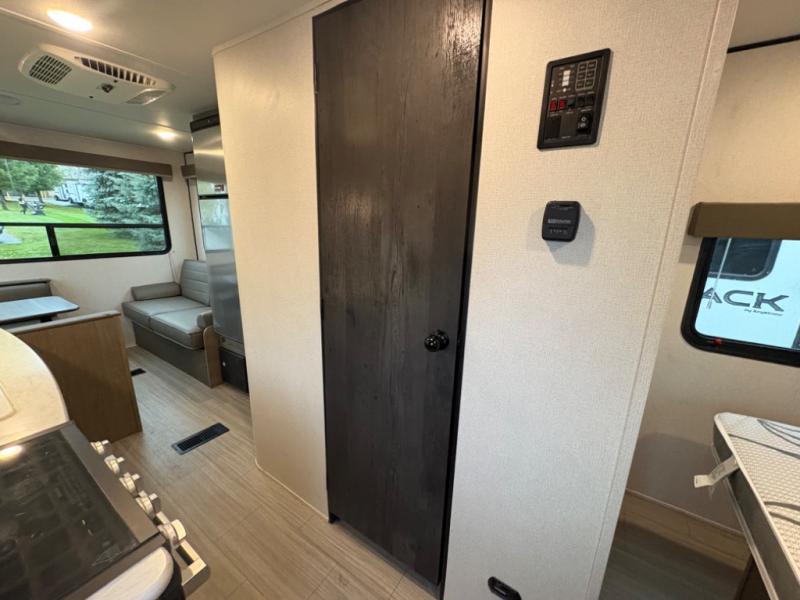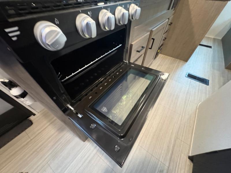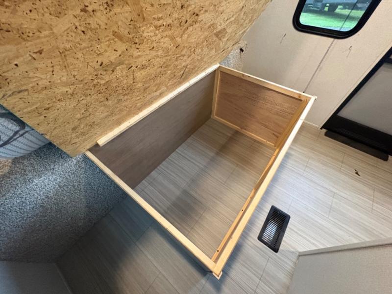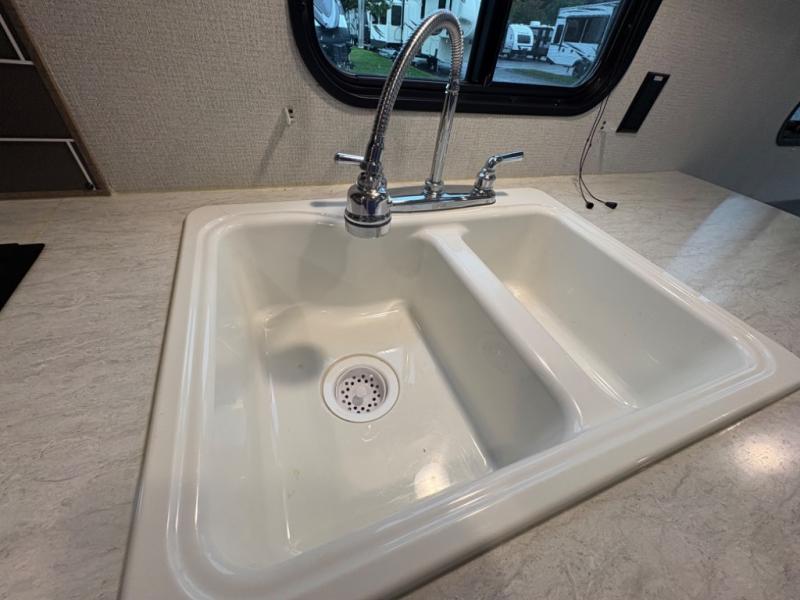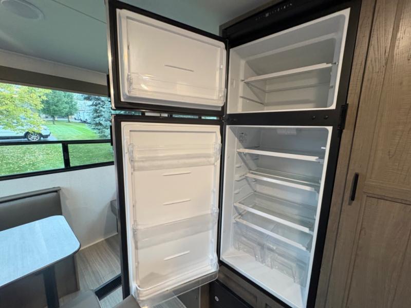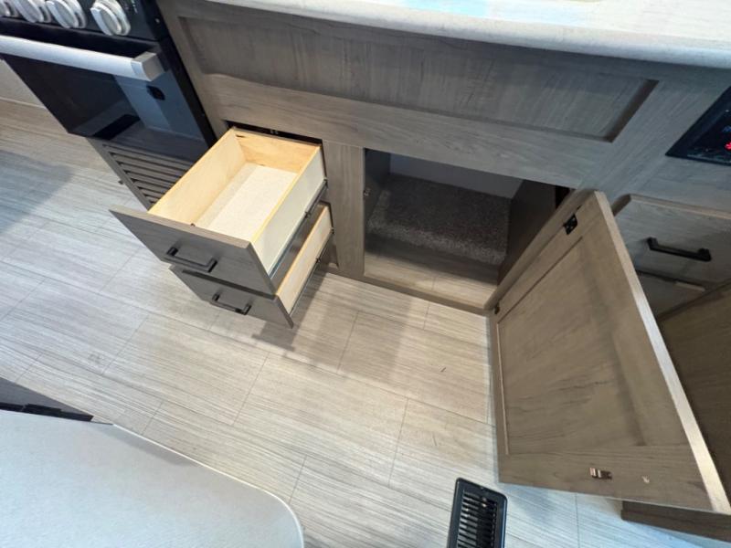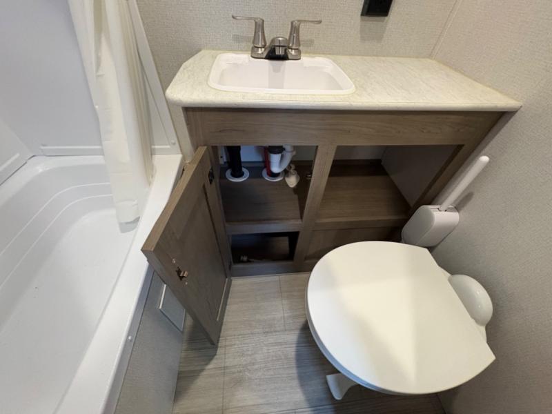 Your family of five will enjoy camping in this Hideout travel trailer as you tour the countryside or take a weekend getaway. The front bedroom area has two closets and overhead cabinets that provide plenty of storage solutions for your extra garments and toiletries, and the queen-size bed delivers complete relaxation throughout the night. You will find it easy to get ready for the day with all of the amenities in the full bathroom, and you will love being able to toss your dirty clothes into the hidden laundry chute.