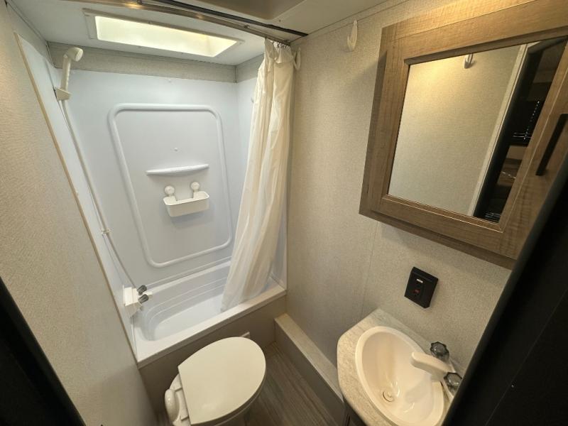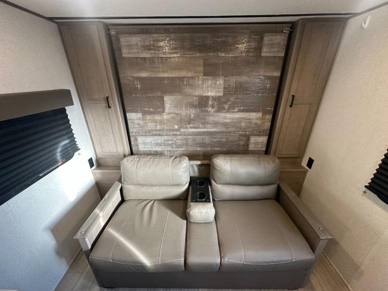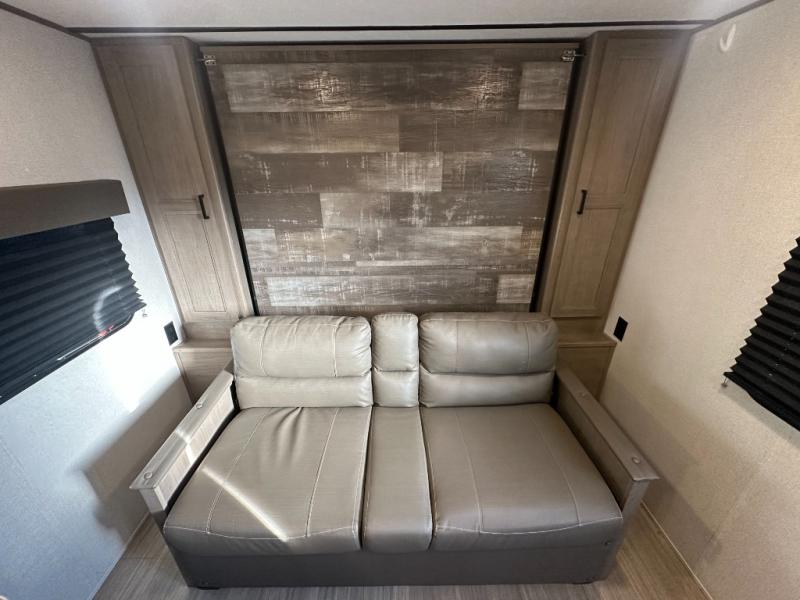 Do you like the flexibility of having a front living area or front bedroom, plus a set of bunks? Then look no further than this Hideout travel trailer by Keystone. Depending on the time of day that you enter this model will determine if you see the jackknife sofa or the Murphy bed set up. Your kids or guests will enjoy the rear double-size bunks, and they will find it convenient to have the full bathroom located right next to them. The central vacuum will certainly be helpful for cleaning up any stray messes that happen along the way.