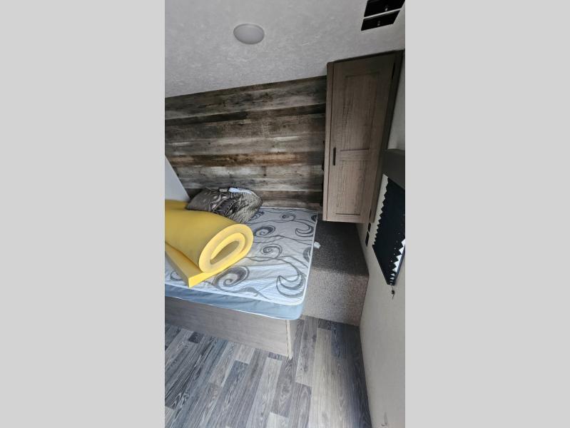 This Hideout Single Axle travel trailer is a great way for your family to get away and enjoy all that nature has to offer. There are bunk beds for the children, a booth dinette slide for added interior space when cooking or for when the kids are playing inside, and a queen-size bed for mom and dad. You will find plenty of storage for your clothing, dishes, or kitchen gadgets with the interior cabinets, and the pass-through storage compartment on the exterior can hold your outdoor games, fishing poles, and more. To help you enjoy spending more time outside, this unit comes standard with a power awning for a little protection from the sun.