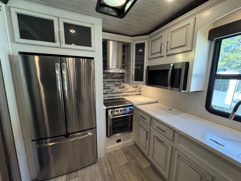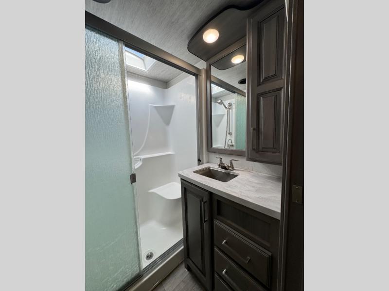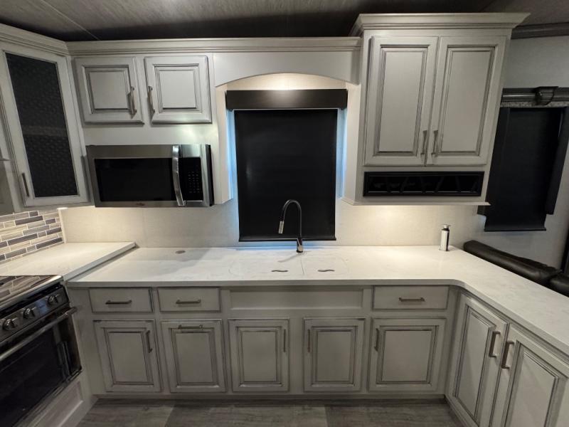 When packing for your next trip in a Keystone Montana luxury fifth wheel you will appreciate the enormous drop frame pass-through storage compartment, the full extension drawer guides, the MORyde "Step Above" entry steps with strut assist, and the LED motion sensor light at the inside steps. The Residential Living package adds more upgraded features such as the motion sensor LED light in the bedroom closet, the easy sweep vinyl flooring, the exclusive KeyTV satellite prep, and the in-floor straight line heat duct system. The Four Season Living package provides insulated in-floor water lines, two attic vents for cross-ventilation, insulated and heated holding tanks and dump valves, and more so you can travel any season you like. It's time to find the luxury fifth wheel you can enjoy for years to come, choose a Montana by Keystone today!