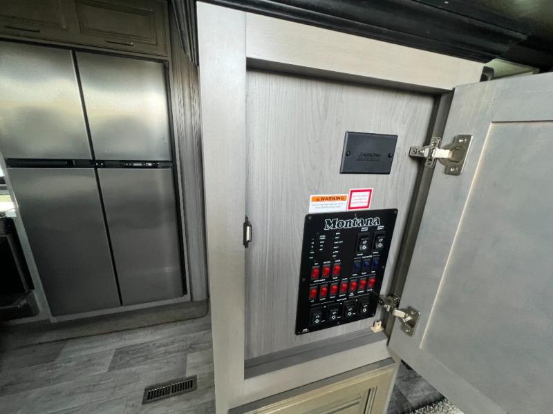 If you are an experienced RVer who is ready to gain more freedom on the road, then you need to check out the Keystone Montana fifth wheel! With exceptional craftsmanship, durable construction, dependable luxury, and cutting-edge technology, the Montana is truly a dream. The Montana has some easy set-up features, like an electric patio awning with LED lights, Hitch Vision with LED lighting, and MORryde Step Above entry steps with strut assist for an easy entrance. The Four Seasons Living Package allows you to camp year around with features such as, a heated and enclosed underbelly, a reflective foil insulated front cap, dual attic vents, and more! The Montana has you covered with convenient camping features, like the central vacuum, the stackable washer and dryer prep, and the Whisper Quiet Cool A/C's for an evenly and quietly cooled RV. Each model includes solid hardwood cabinet stiles, a 5K BTU decorative fireplace heater, a high-rise pull down faucet in the kitchen, plus many more interior comforts to make you feel right at home.