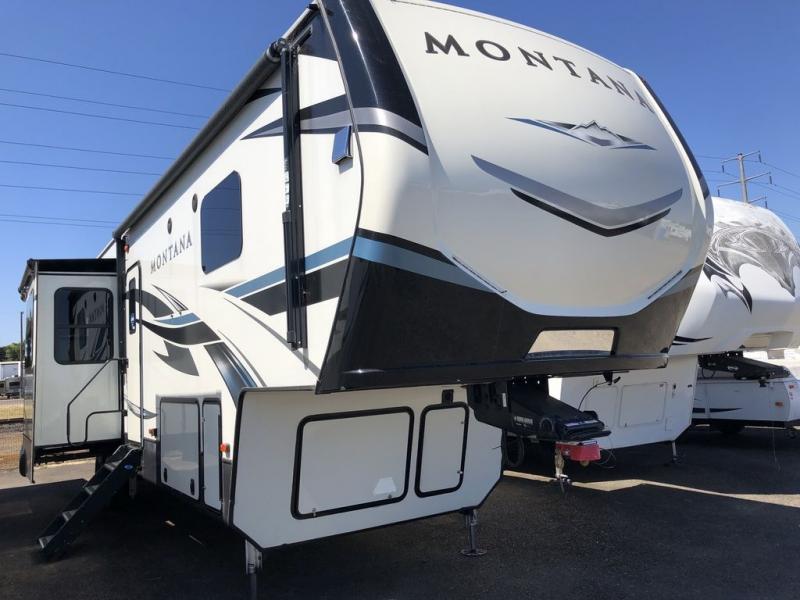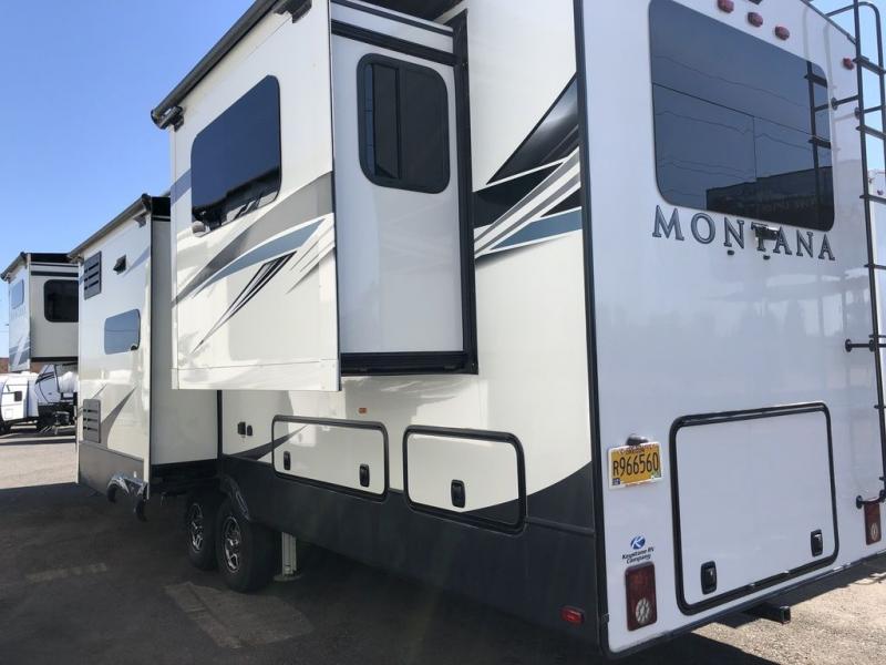 If you are an experienced RVer who is ready to gain more freedom on the road, then you need to check out the Keystone Montana fifth wheel! With exceptional craftsmanship, durable construction, dependable luxury, and cutting-edge technology, the Montana is truly a dream. The Montana has some easy set-up features, like an electric patio awning with LED lights, Hitch Vision with LED lighting, and MORryde Step Above entry steps with strut assist for an easy entrance. The Four Seasons Living Package allows you to camp year around with features such as, a heated and enclosed underbelly, a reflective foil insulated front cap, dual attic vents, and more! The Montana has you covered with convenient camping features, like the central vacuum, the stackable washer and dryer prep, and the Whisper Quiet Cool A/C's for an evenly and quietly cooled RV. Each model includes solid hardwood cabinet stiles, a 5K BTU decorative fireplace heater, a high-rise pull down faucet in the kitchen, plus many more interior comforts to make you feel right at home.