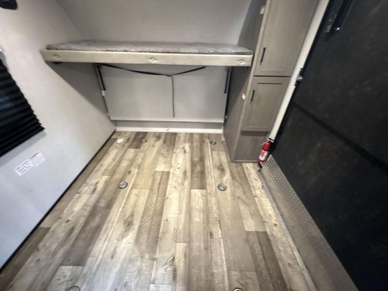 The kids will love having their own double-size bunk beds each night so that their friends can join them on campouts in this Outback Ultra Lite travel trailer, and you will appreciate having your own private bedroom on the opposite side with a walk-around queen bed, a built-in pet kennel for your best friend, plenty of clothing storage, and a laundry chute. You can make meals inside with full amenities or outdoors on the outside kitchen. The 21' awning, the SolidStep entry, and the pass-through storage are outside features that provide protection from the elements, a safe entry and exit, and space to keep your camping chairs, outdoor games, and such. Back inside you will have your own full bathroom to get cleaned up in, a booth dinette to play games and eat meals, and handy shoe storage as you enter.