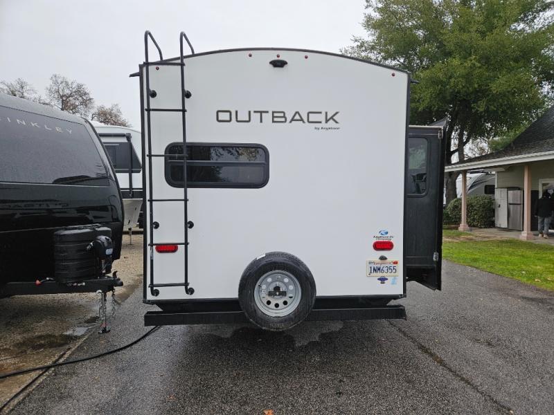 See how easy and convenient camping can be inside this Outback Ultra Lite travel trailer. You will find the rear kitchen layout provides plenty of space to cook without having to move when someone is walking to the opposite end of the trailer. The single slide will let you and your family relax comfortably on the sofa sleeper or the booth dinette, and you will enjoy reading a book while lying on the queen-size bed in the front master suite. And the double-entry bathroom allows you to quickly access it at night from the bedroom, plus the kids can use the hallway entrance.