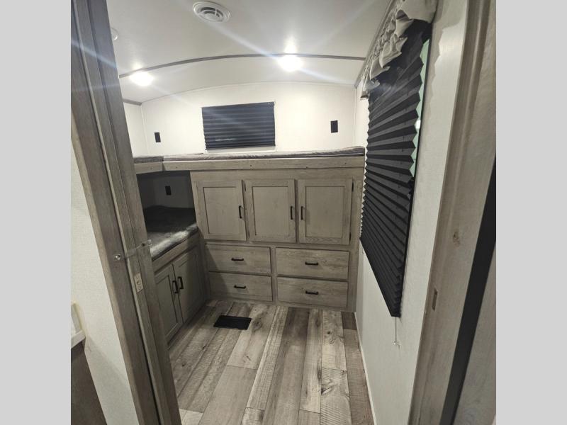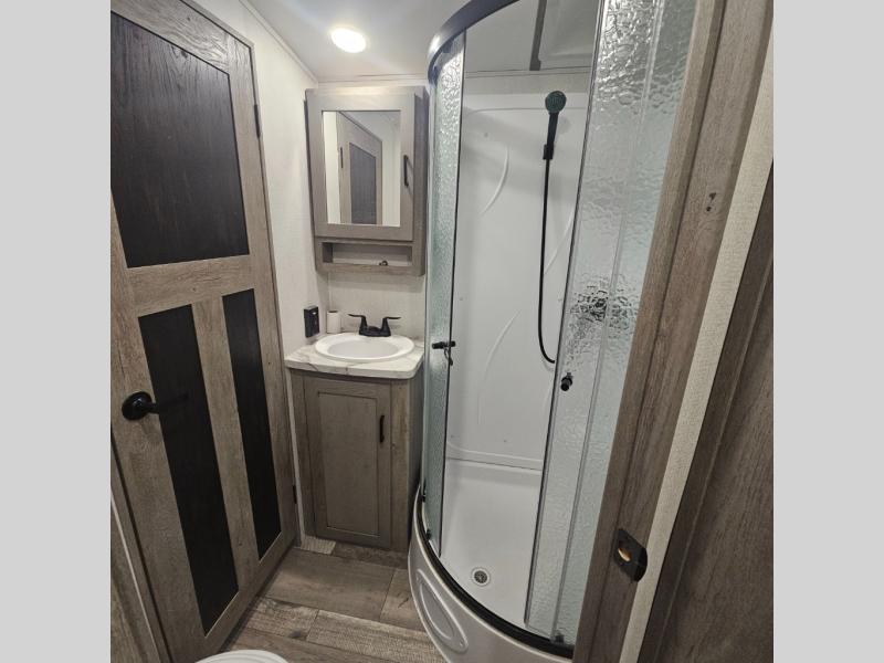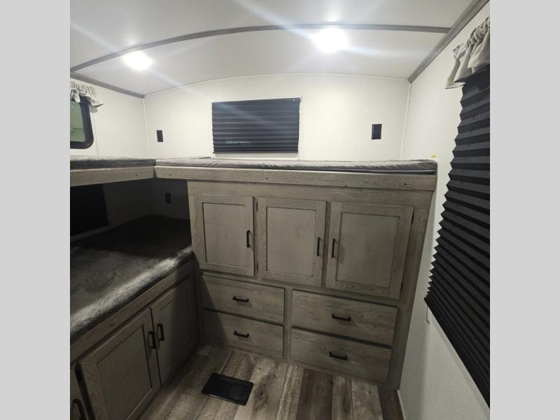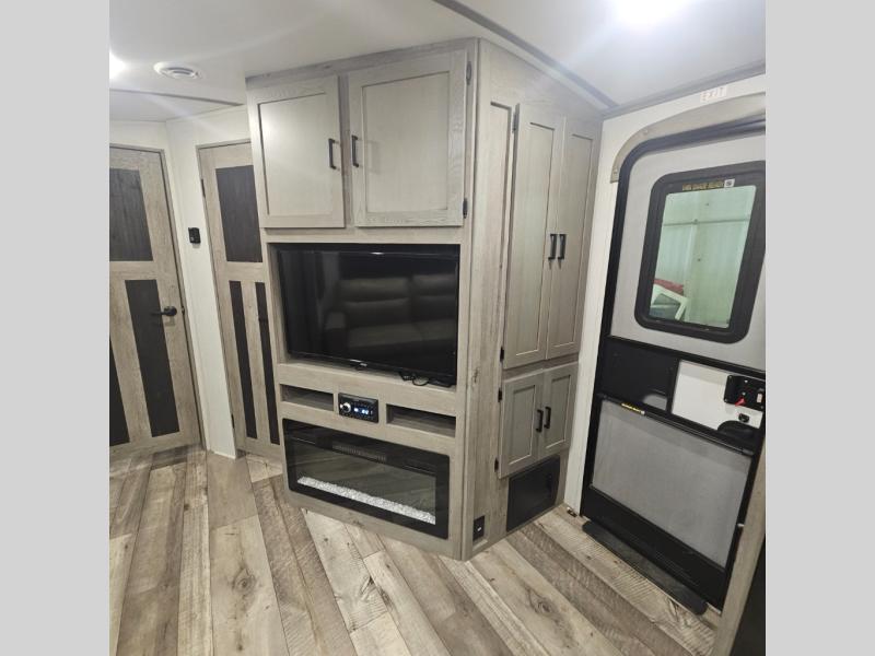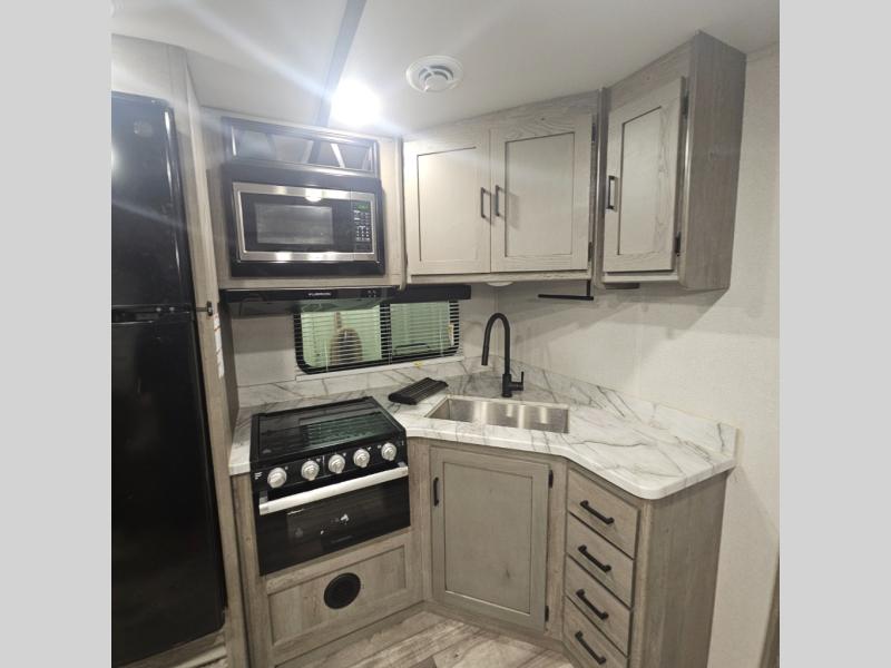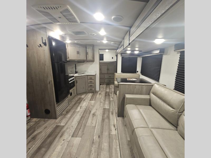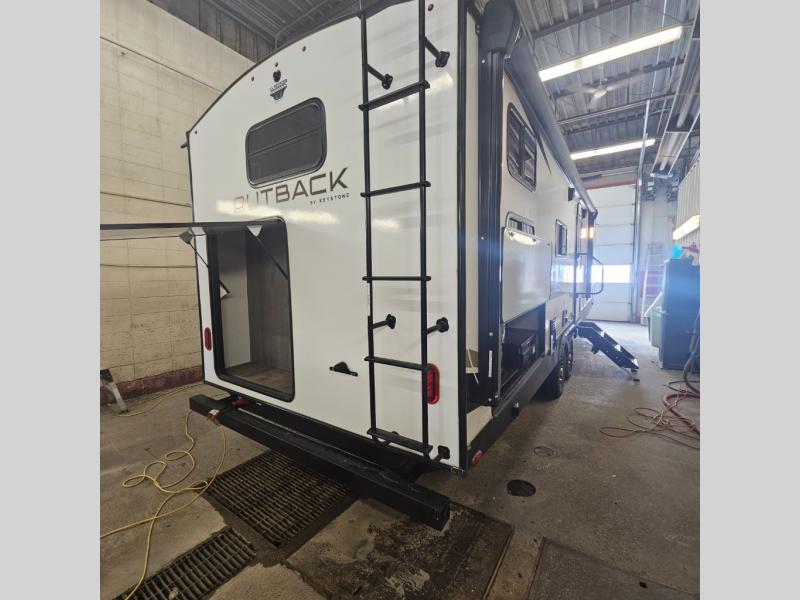 With any Keystone Outback Ultra Lite travel trailer or toy hauler, you will enjoy a beautiful interior that is outfitted with modern style. Some models feature interior sliding barn doors, and all models have extra-tall slide height for more head space. You can extend your camping season thanks to the one-piece polypropylene heated, enclosed underbelly, the 15K BTU A/C with true Race Track ducting, and the upgraded 10-cubic foot 12V gas/electric refrigerator. Some other notable features are the fully walkable 3/8" roof decking and one-piece TPO membrane, the HyperDeck flooring, and the outside shower. These are just a few of the reasons you will want to own an Outback Ultra Lite to explore the outdoors!