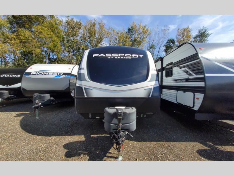 The Passport GT Series travel trailers by Keystone RV are lightweight and towable behind many SUVs and half-ton trucks. The Passport offers a HyperDeck flooring system which is a high-performance, water-resistant RV floor that comes as a breakthrough design from the Keystone Innovation Lab. This flooring is more resilient, stronger, and lighter than traditional laminated wood construction. The vaulted ceiling and in-floor heating ducts are extra features to the GT Series, and all units have power stabilizer jacks to keep your trailer secured in place, plus a painted fiberglass front cap and MORryde Step Above entry steps. Choose your favorite Passport GT Series today and start going everywhere!