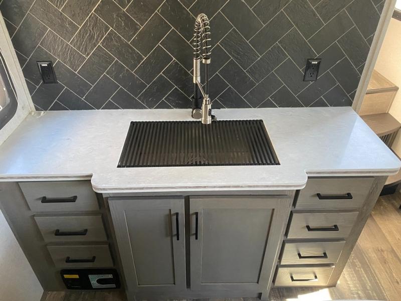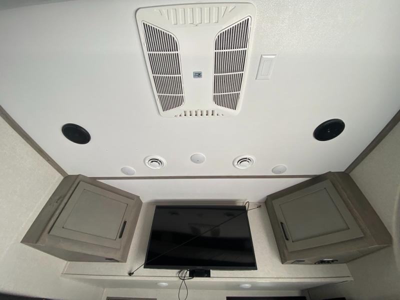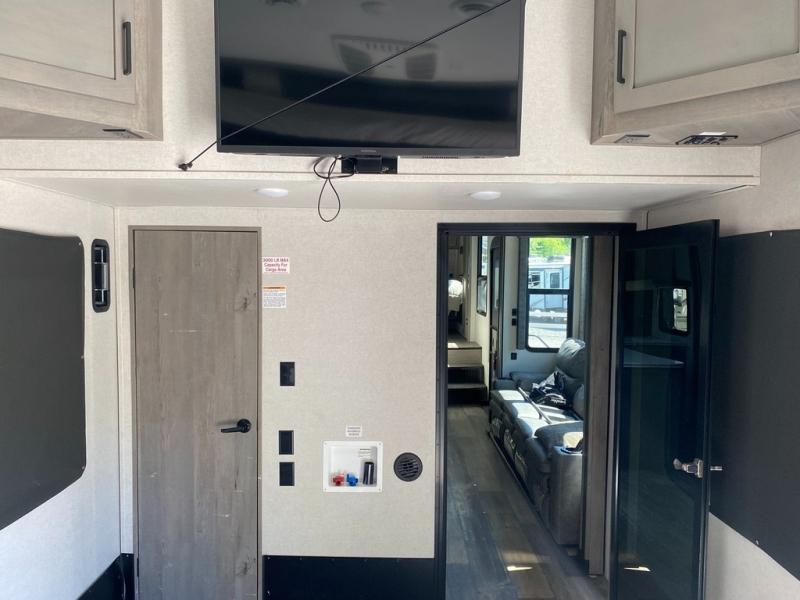 The Keystone Raptor toy hauler has rugged flexibility that will entice any adventurer! The Raptor's sophisticated design makes it an attractive choice for anyone, and the hardworking innovation makes it suitable for all thrill-seekers. No matter who you are, the Raptor has something that you'll love, like the wireless phone charging station, on-board fuel station, Zero Gravity ramp door, Onan 5,500W gas generator, and Furrion wireless back-up camera. The heated and lighted pass-through storage area gives you an additional space to place your gear, and the outside shower allows you to rinse off your toys or muddy boots before coming inside. The Raptor also has a few Keystone-exclusive features, like the Tru-fit slide construction, KeyTV, and Tuf-Lok thermoplastic duct joiners.