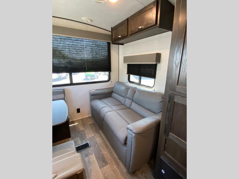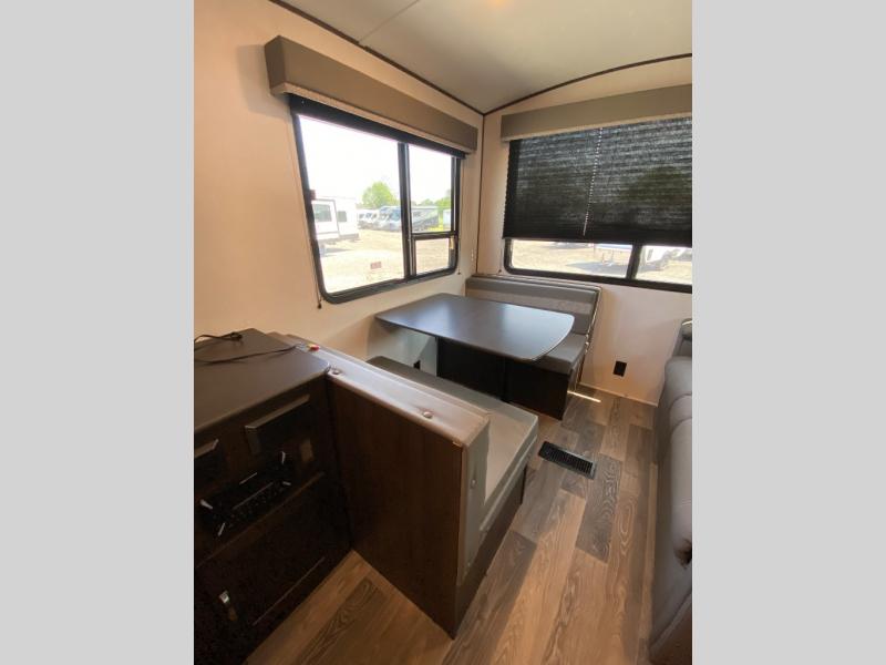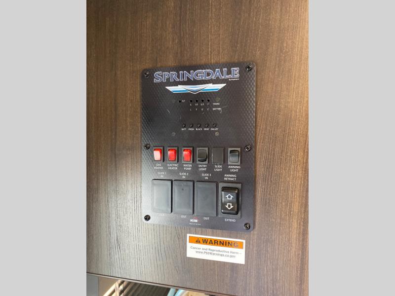 Getting away from work with your family and friends is easy to do with this Springdale travel trailer! You will have your own queen bed with dual closets and nightstands in the front bedroom, plus there is a divider to provide privacy when you need to change or have your own space away from the main area where the kiddos or your friends are sleeping on the furniture. When it's time for breakfast, you will find a full kitchen including a pantry, and a booth dinette to eat at or play games at when the weather isn't just right outside. And the full bathroom will keep everyone clean for whatever adventure is next!