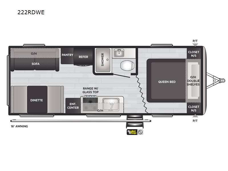 Let your adventurous spirit be completely cared for with this Springdale! This trailer is compact enough to get to the campsite easily, yet it contains everything you need to have an enjoyable getaway without feeling like you're "roughing it." A queen bed is in the front of this trailer so that you can have some privacy while you sleep or get ready for the day, and a sofa and booth dinette in the back provide comfortable seating space for you and your family or friends while you eat a meal or use the entertainment center. You will also be happy to find a pantry so that you can store your favorite goodies for any late-night snacking.