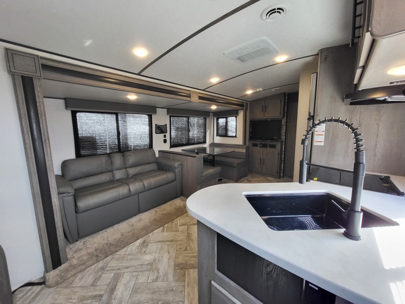 With any Keystone Springdale travel trailer, fifth wheel and destination trailer, you will appreciate the 12V color-coded wiring with easy-to-trace circuits which is better than conventional RV wiring allowing a faster diagnosis for quicker repairs. Also included, the Blade high performance air flow system that delivers 30% more air flow and the streamlined heat distribution that uses in-floor heat vents for more efficiency for uninterrupted air flow. Some exterior features include the LCl SolidStep for a sturdy entrance, the pass-through storage compartment for larger outdoor gear, and Dexter E-Z Lube axles. The interior offers designer upholstered window valances, pressed kitchen countertops, and much more depending on the Springdale you choose.
