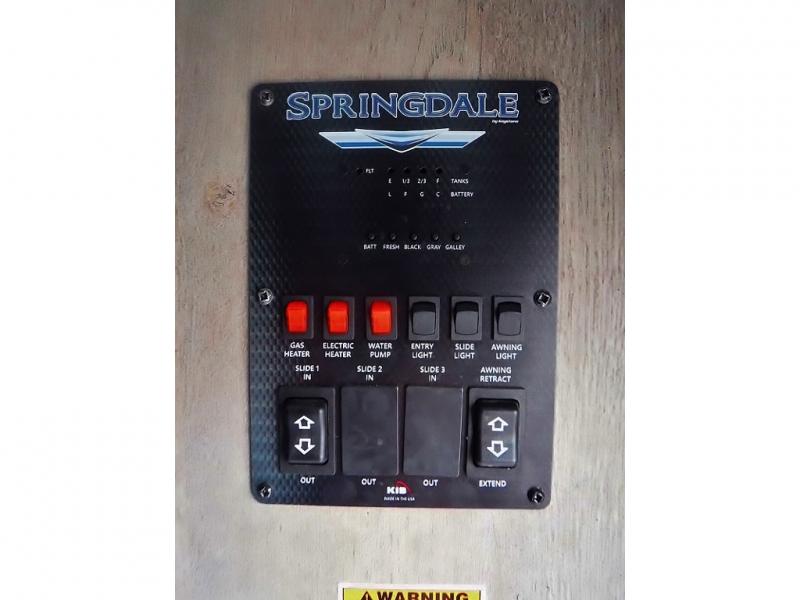 With any Keystone Springdale travel trailer, fifth wheel and destination trailer, you will appreciate the 12V color-coded wiring with easy-to-trace circuits which is better than conventional RV wiring allowing a faster diagnosis for quicker repairs. Also included, the Blade high performance air flow system that delivers 30% more air flow and the streamlined heat distribution that uses in-floor heat vents for more efficiency for uninterrupted air flow. Some exterior features include the LCl SolidStep for a sturdy entrance, the pass-through storage compartment for larger outdoor gear, and Dexter E-Z Lube axles. The interior offers designer upholstered window valances, pressed kitchen countertops, and much more depending on the Springdale you choose.