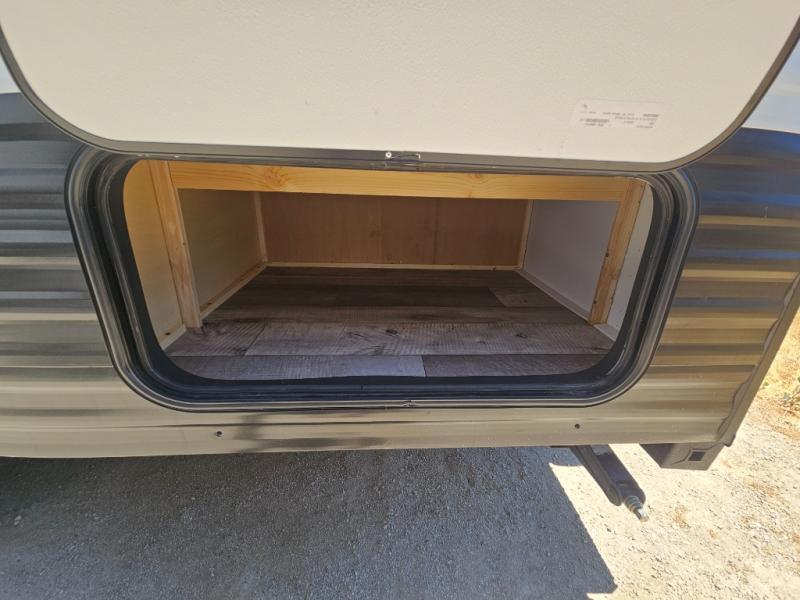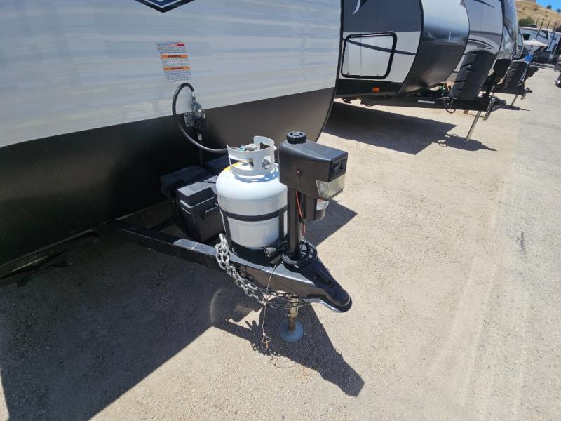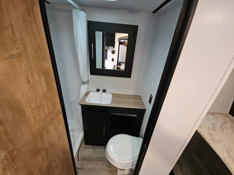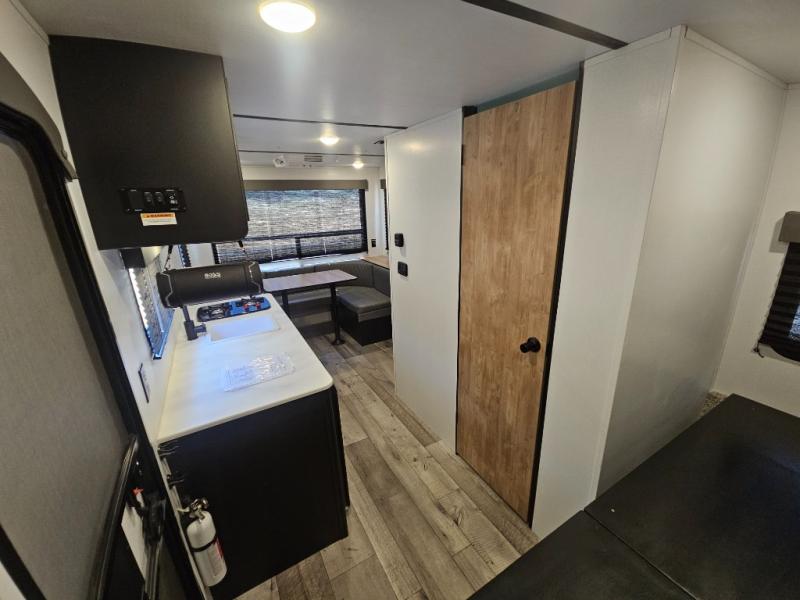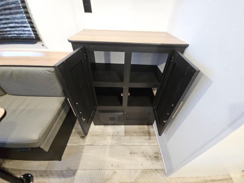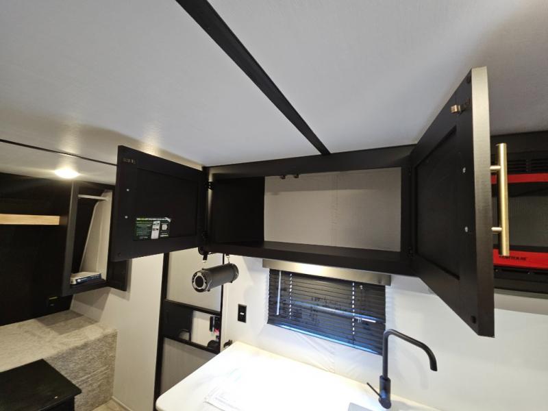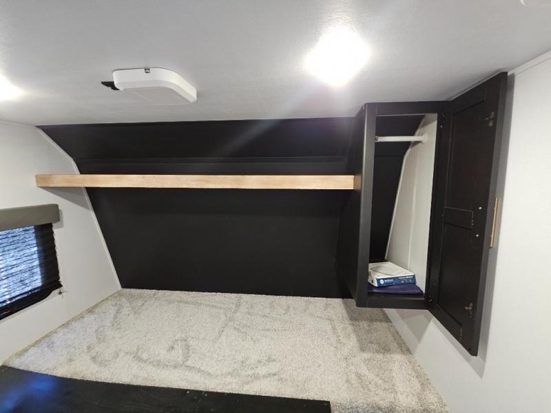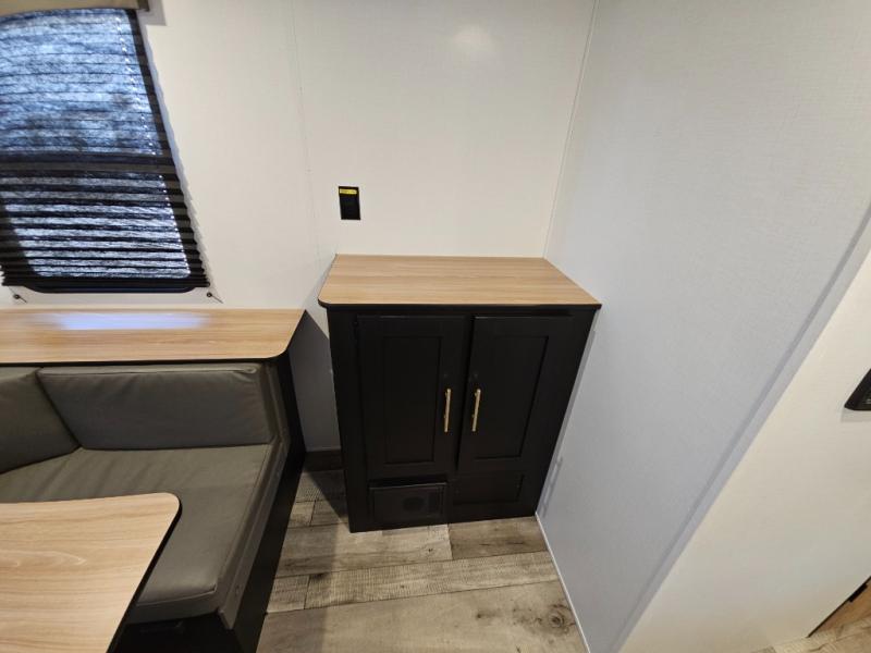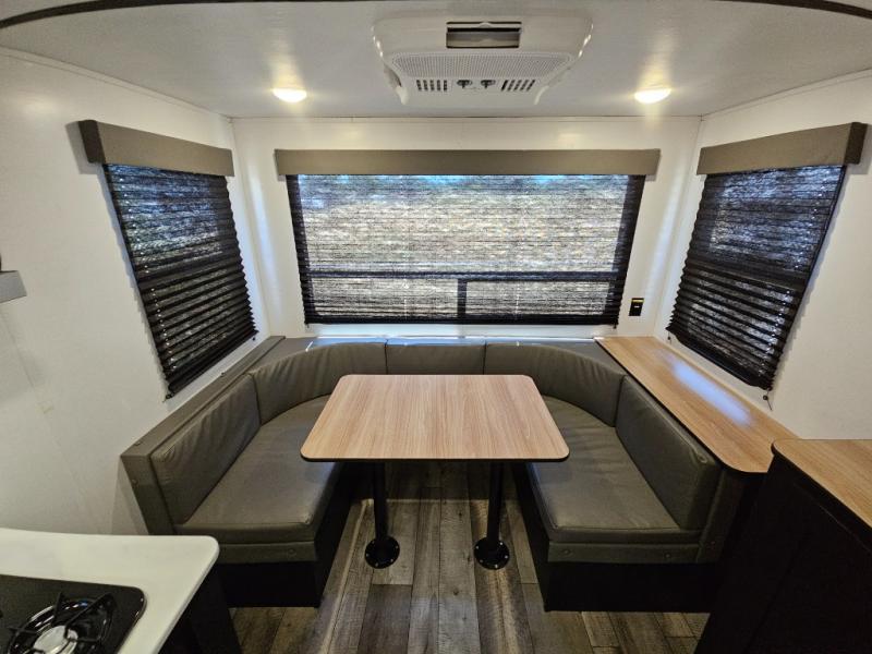 If you're ready for camping near or far, you will want an easy to tow, lightweight Keystone Springdale Mini travel trailer. These models include a power awning with LED lights, a pass-through storage compartment for all your gear, and LCI SolidStep entry steps for your convenience. The interior is made bright and open with a Whitewashed brick accent wall, larger windows, and lighter vinyl flooring throughout. You will find many convenient storage solutions, such as wall-mounted cargo nets next to each USB port for your tablet, camera, or phone, two shelves above the bed for your books, and easy access storage under the sofa or bunks where applicable. These travel trailers also include safety measures for your peace of mind, including GFI receptacles, smoke and carbon monoxide detectors, a fire extinguisher, plus more!