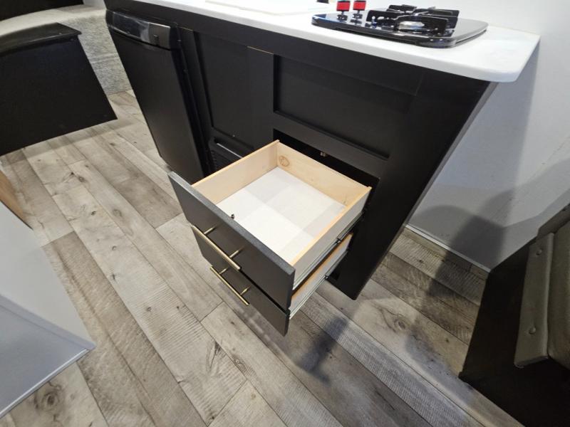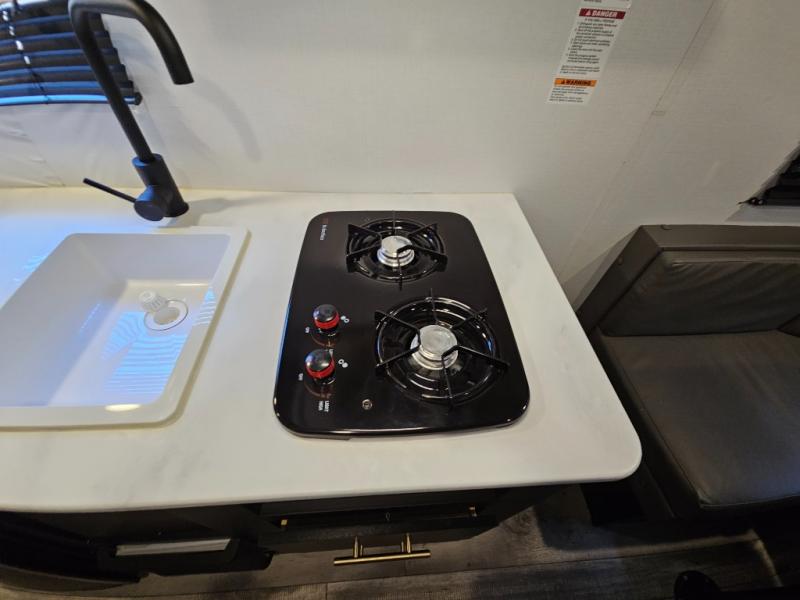 Come enjoy each camping trip in this single axle Springdale Mini 1750RD travel trailer. You can enjoy your meals at the U-shaped dinette, and in the evenings plan to visit or play a card game here. Along the front of this model there is a queen bed with bedside outlets, a closet at the foot of the bed to hang your clothes, and overhead cabinets above the bed. You can bring along all of your favorite snacks and easily store them inside the large pantry, plus you can easily whip up a meal with the two burner range.