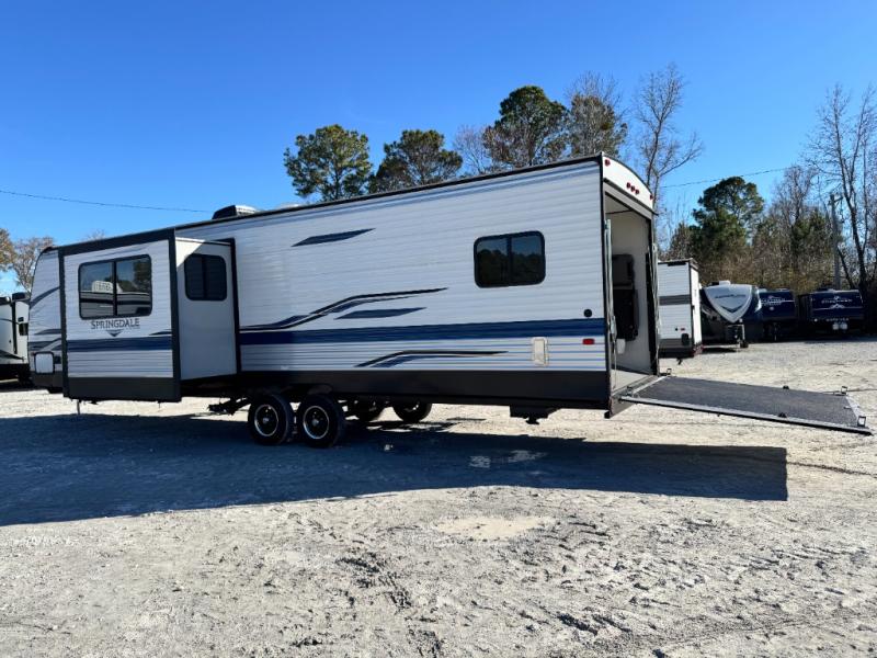 Discover the Ultimate Used 2021 Keystone RV Springdale Tailgator 32TH Toy Hauler Travel Trailer for Sale in Longs, North Myrtle Beach, SC – Your Go-To RV Dealer at Recreation USA in Longs, South Carolina!