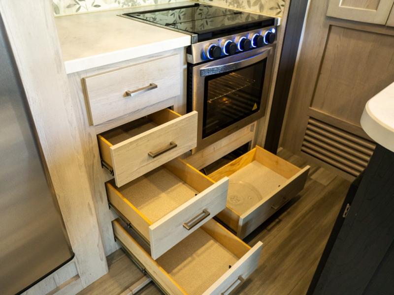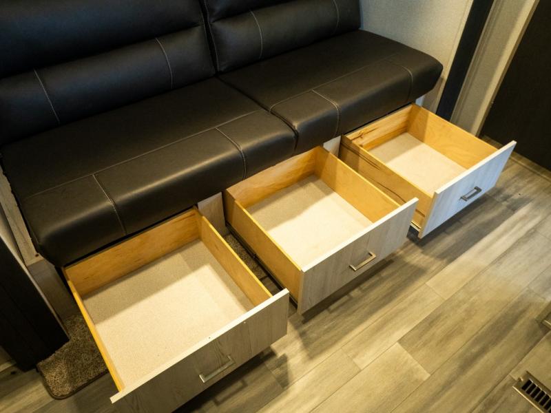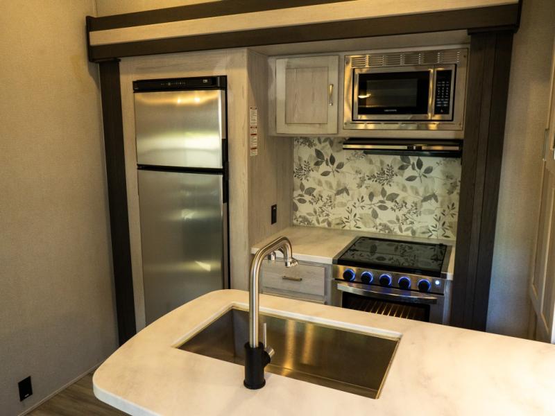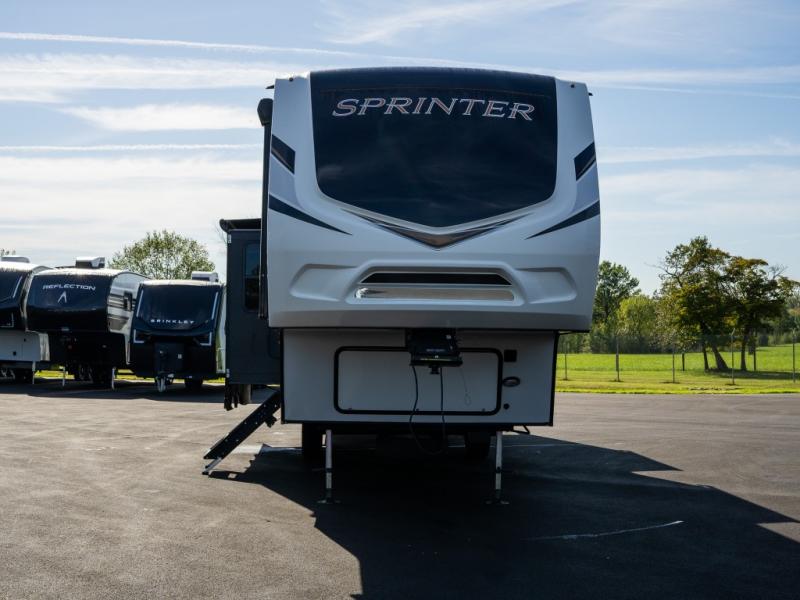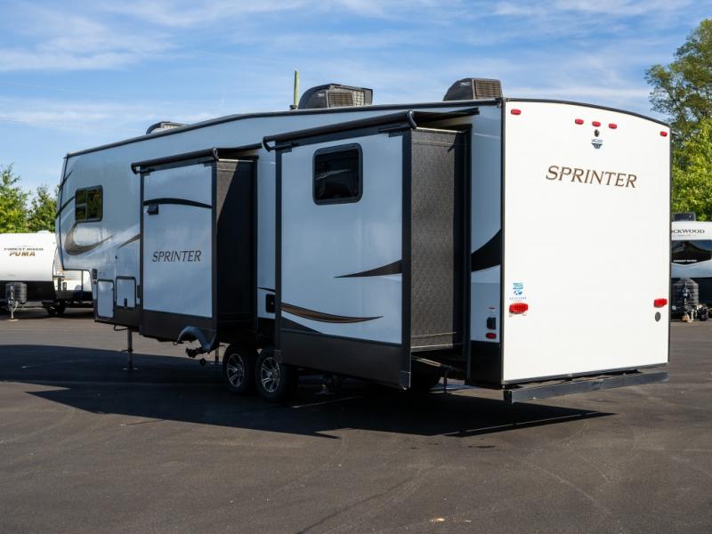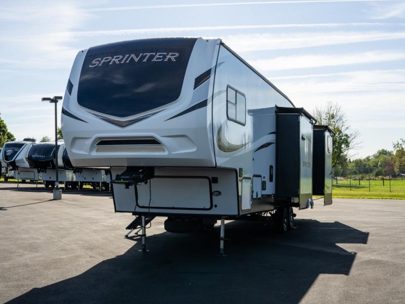 Redefine your camping experience with a Keystone Sprinter fifth wheel! You are sure to appreciate the exclusive features such as the in-floor heat ducts, the color-coded unified wiring, and the Tru-fit slide construction which resist leaking. Some premium features include crown molding, an eight function remote for the awning, stabilizers/leveling, slide outs and awning lights, and deep drawers with full extension heavy-duty guides. Each model is also prepped for solar power, a backup camera, plus 4G LTE and WiFi. Make camping easy by choosing your favorite Sprinter today!