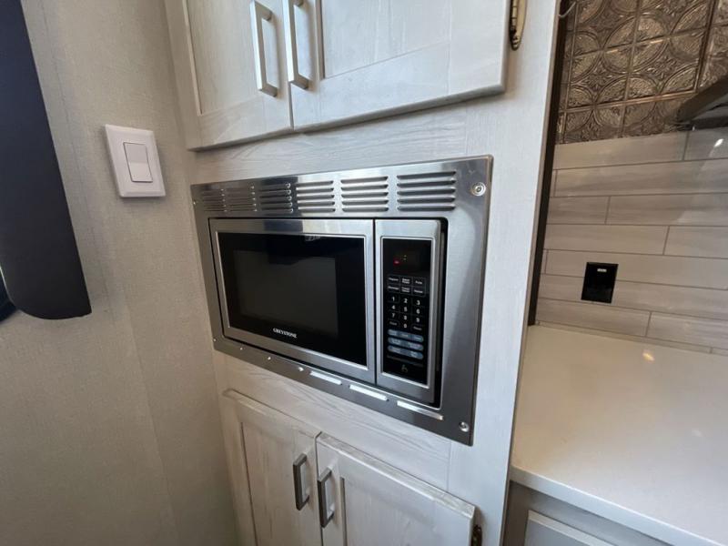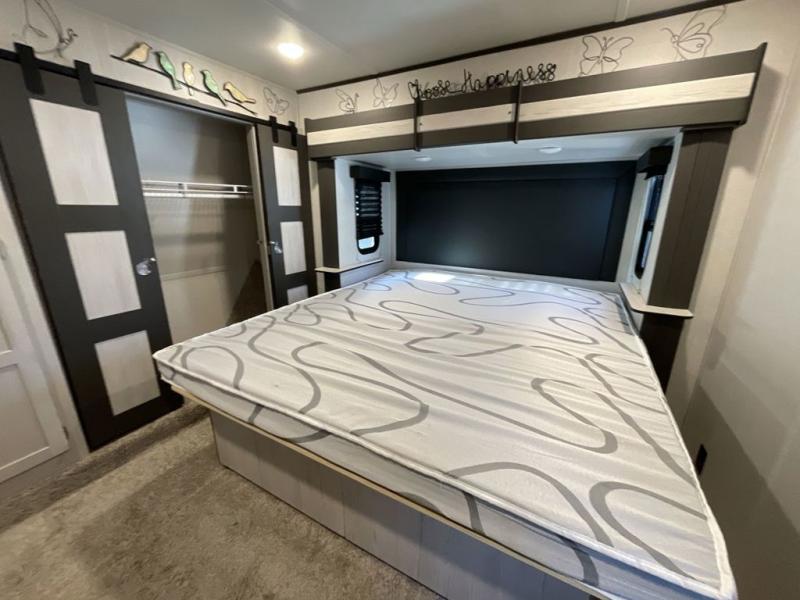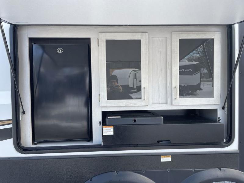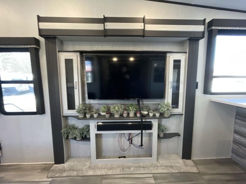 You haven't experienced a luxurious camping vacation until you have done so in this Sprinter Limited fifth wheel! The rear kitchen makes it easier for you to whip up some delicious pancakes for breakfast and serve them right off the three-burner range to those sitting at the breakfast bar on one of the three bar stools. You can even grill up some juicy burgers on the exterior two burner cooktop while you watch the big game if you choose to add the optional TV hookup. After you have stuffed yourself full, you can either take an afternoon nap on the tri-fold sofa in the living area or head to the front private bedroom and lie down on the king-size bed with outlets on either side for you to charge your electronics!