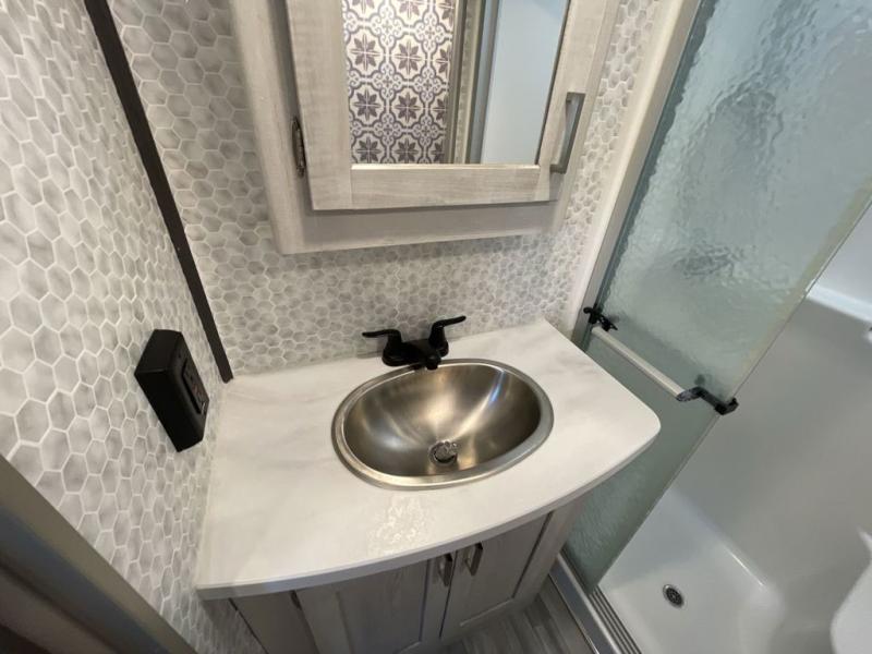 Set out on a redefined adventure with any one of the industry-best 100" wide-body constructed Sprinter Limited fifth wheels by Keystone RV! The Tru-Fit slide construction offers a more durable slide room design that minimizes functional motor and structural stress, as well as resists leaking. The in-floor heating ducts allow for more airflow to distribute heat evenly, and the Tuf-Lok A/C duct joiners securely join duct work and A/C units to drastically reduce chilled-air leaks and boost cooling efficiency. Inside you'll find a deep single-basin stainless steel industrial sink and LG solid surface countertops in the kitchen, plus an upgraded bedspread and LED reading lights over the bed for your comfort. These fifth wheels also include a convenient eight-function remote for awnings, lights, and stabilizers/leveling, plus a 15K BTU Coleman Mach Quiet Cool A/C and a 35K BTU furnace to keep you comfortable year around!