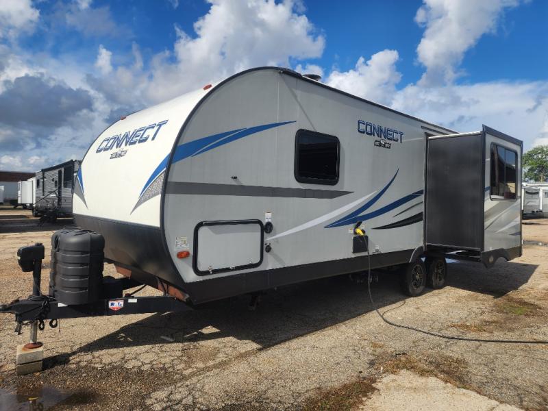 Come connect with nature in this Connect travel trailer! The master suite is going to provide you with many nights of great sleep since it has a king-size bed, and the private entrance into the dual-entry bathroom is going to make it easy to slip into the radius shower discreetly. The kitchen has many features for easy meal prep, like the 21" stainless steel oven, the seamless countertops, the deep undermount stainless steel sink, the stainless steel microwave, and the 8-cubic foot refrigerator. Plus, there is also an outdoor kitchen that you can use while you are playing outside with the rest of the family.