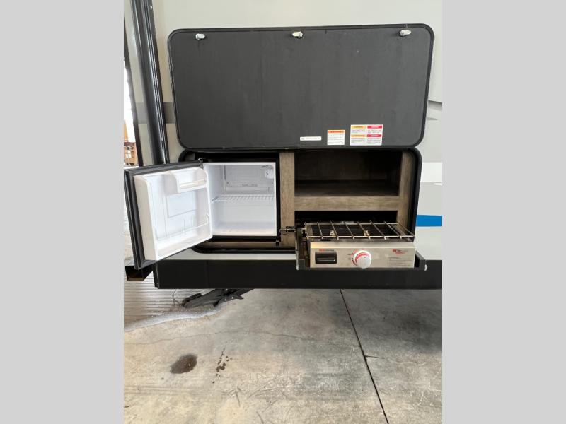 Come connect with nature in this Connect travel trailer! The master suite is going to provide you with many nights of great sleep since it has a king-size bed, and the private entrance into the dual-entry bathroom is going to make it easy to slip into the radius shower discreetly. The kitchen has many features for easy meal prep, like the 21" stainless steel oven, the seamless countertops, the deep undermount stainless steel sink, the stainless steel microwave, and the 8-cubic foot refrigerator. Plus, there is also an outdoor kitchen that you can use while you are playing outside with the rest of the family.