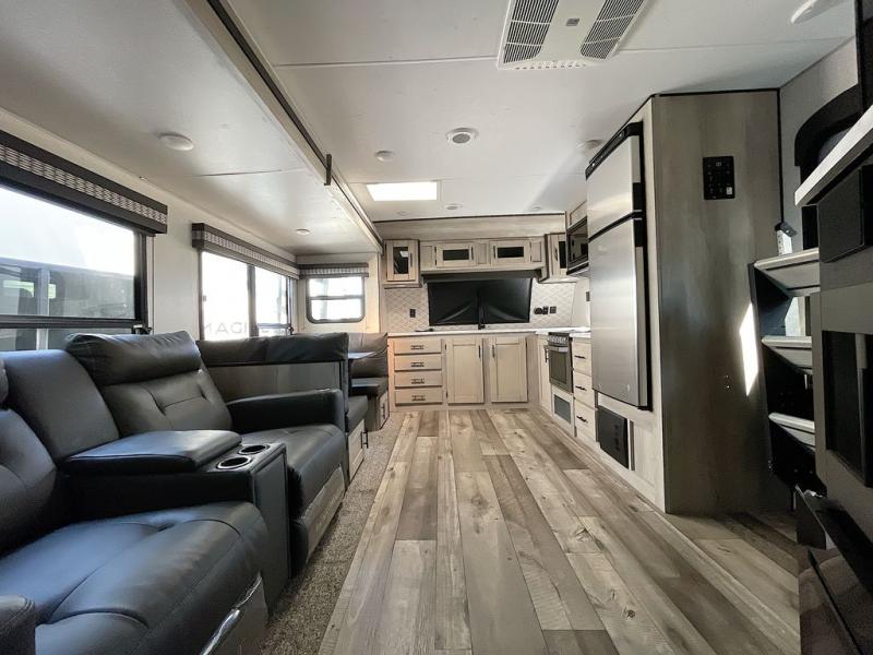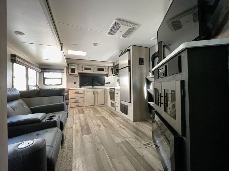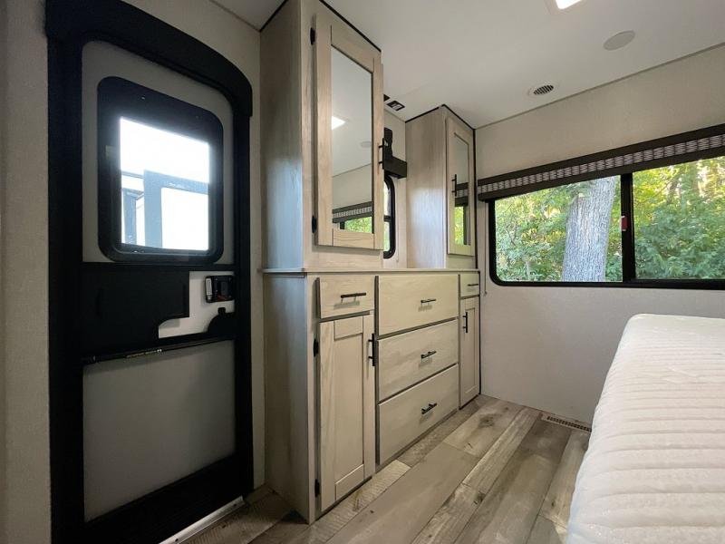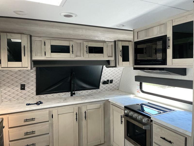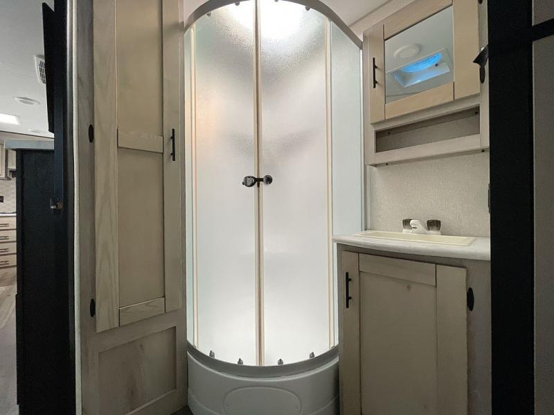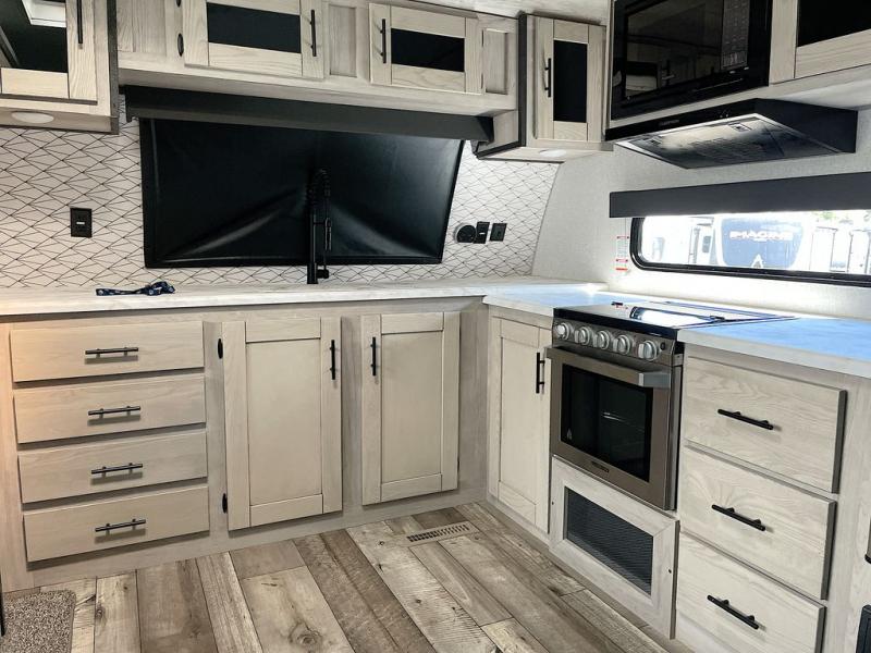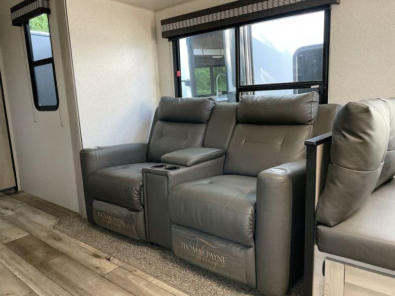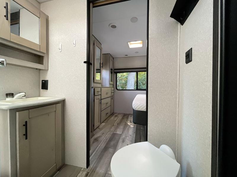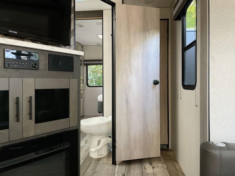 With two entry doors, a master suite, and a spacious front kitchen, this Connect travel trailer is a dream to own! You can choose to spend your nights outside relaxing underneath the 18' electric awning, or you can come inside and put your feet up on the 70" sofa as you switch on the multi-media entertainment system with DVD. The booth dinette is right next to the front kitchen, so you can sit down and chat with the cook, or you can grab some veggies from the 8-cubic foot refrigerator and help them chop. With a walk-in pantry, you can keep your snacks stored away for later, and you will appreciate the great comfort that is provided on the king-size bed back in the master suite.