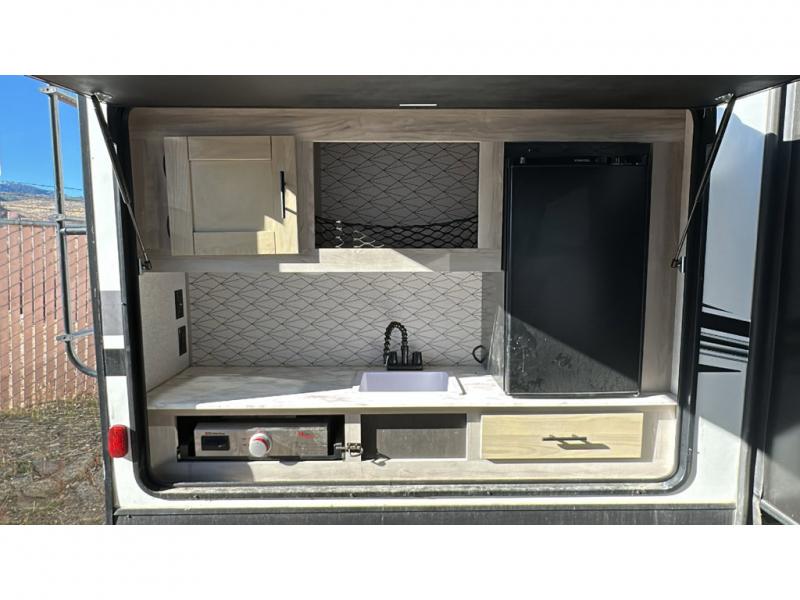 You will be so impressed with this Connect travel trailer! This trailer has a bunkhouse suite for your kids or your guests, and this bunkhouse comes with its very own half bath, flip-up bunk, dinette, and set of bunks. The master suite up front is also a wonderful sleeping area since it has a king-size bed and a private entrance into the dual-entry bathroom. For everyone traveling with you, the full indoor kitchen and the outdoor kitchen are going to be especially helpful because they will make it easy to create enough meals to keep everyone filled. Plus, the two electric awnings are going to provide you all with great shade while you spend an afternoon outside enjoying your beautiful surroundings.