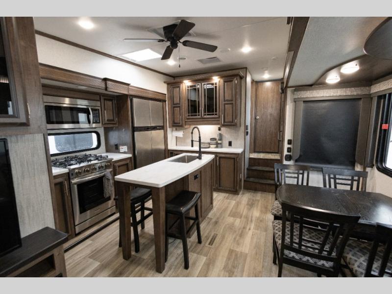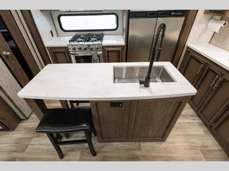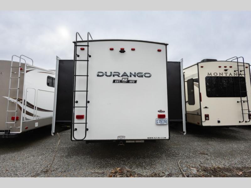 With any KZ Durango fifth wheel you will have the lightest high-profile, wide body, luxury fifth wheel in the industry with six-sided aluminum framing, the All Weather Insulation package which includes a heated, insulated and enclosed underbelly to travel during any climate, and Tufflex roofing material that is flexible, puncture resistant, and reflective. Each model features a fully-vented attic system with two attic vents providing vital escape routes for unwanted moisture, and the Durango Towing package which includes a 2" towing receiver hitch with 4-pin wire harness connection, a 3,000 lb. tow rating, and 300 lb. hitch rating. The interior includes features such as a Serta Comfort foam king bed, overhead storage with decorative shelving, a residential one-piece fiberglass shower stall with built-in seat and glass doors, a 24" oven with four-burner gas range and 30" convection microwave, plus many more features you will want to have. Make your choice today!