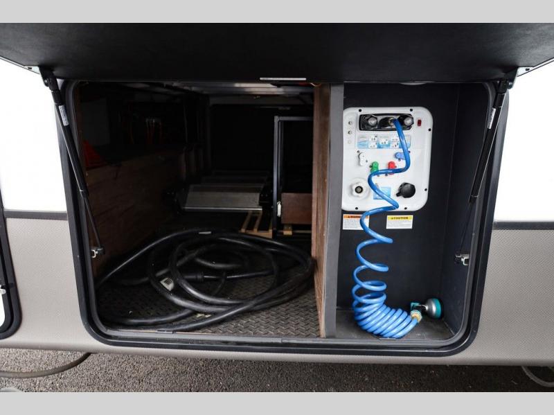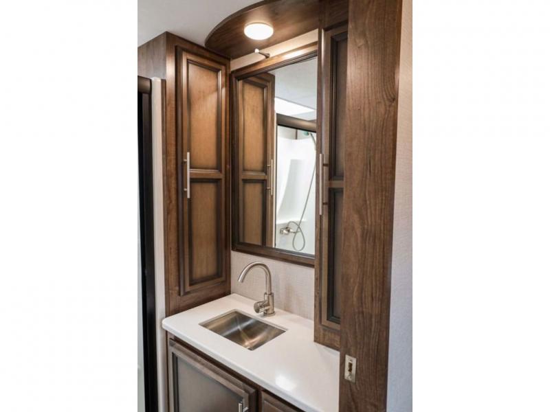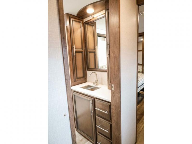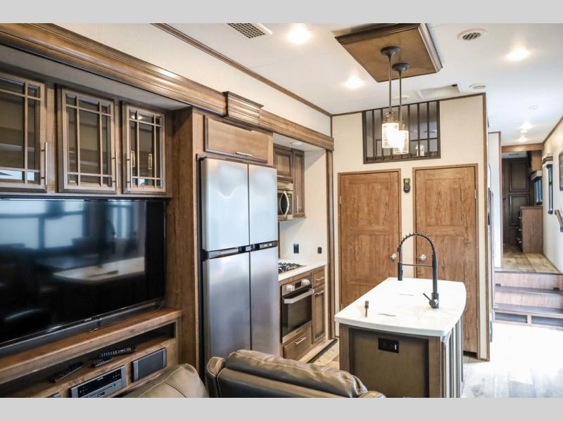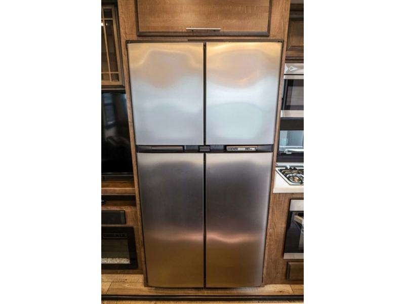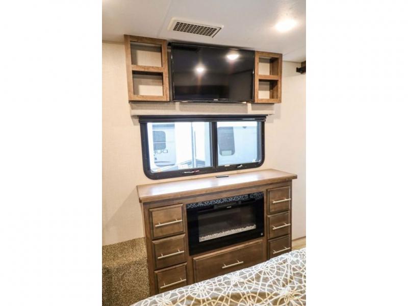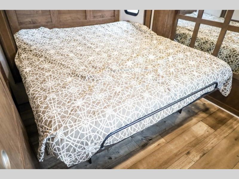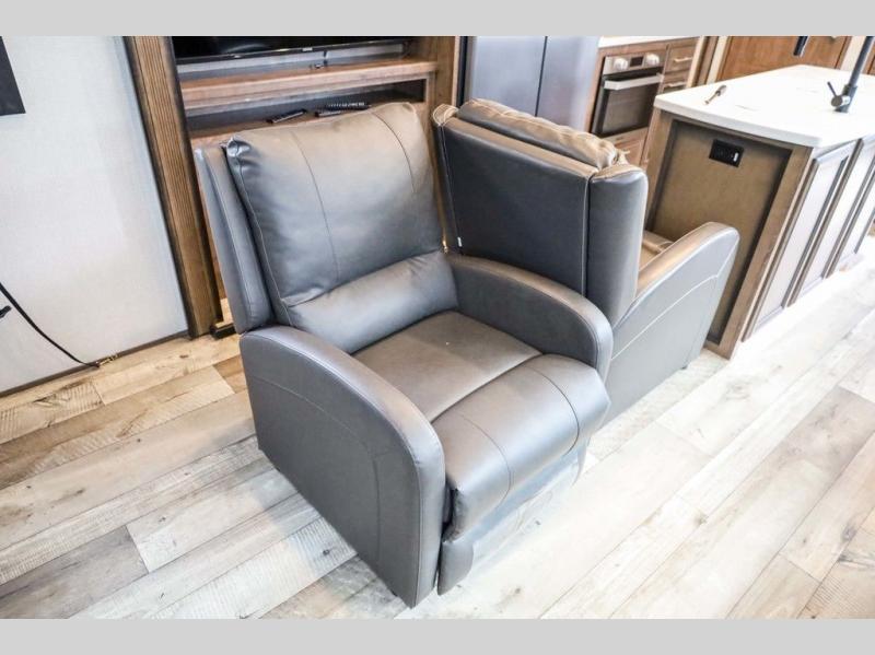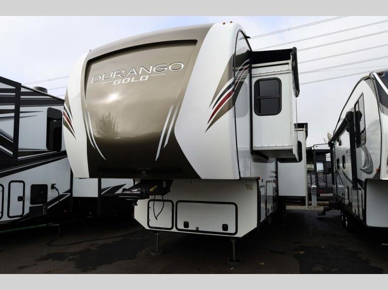 With any Durango Gold fifth wheels by KZ you will have flexible, puncture resistant, and reflective Tufflex roofing material, six-sided aluminum framing, and a heated, insulated and enclosed underbelly to travel all year long. Each model features a fully-vented attic system with two attic vents providing vital escape routes for unwanted moisture, and the Durango Towing package which includes a 2" towing receiver hitch with 4-pin wire harness connection, a 3,000 lb. tow rating, and 300 lb. hitch rating. The lithium-ready charging station includes a dual converter allowing you to flip a switch to choose between lithium or lead batteries. The interior offers outstanding features such as theater seating with cupholders, a USB plug, heat, massage and power recline/decline, an under-mount bathroom stainless steel sink with waterfall faucet, bedroom cabinetry with built-in hamper, and a Gold's 70" x 80" walk-around electric-tilt king bed with underbed drawers for extra storage. The list keeps going, choose your favorite Durango Gold today for luxury full-time traveling!
