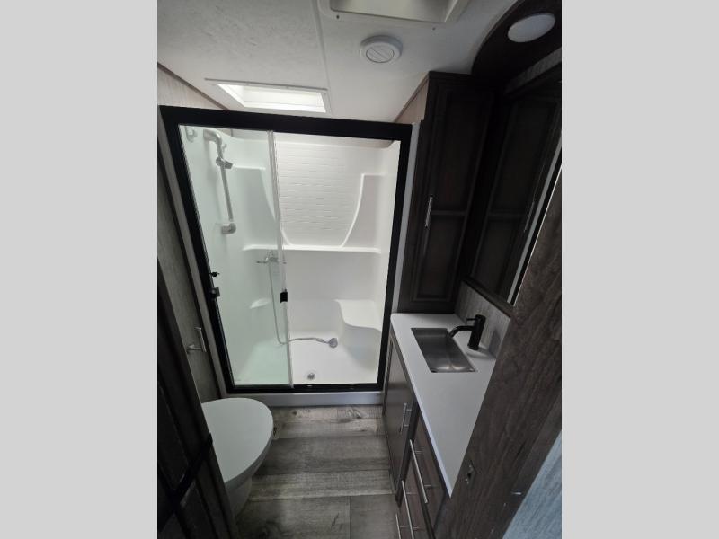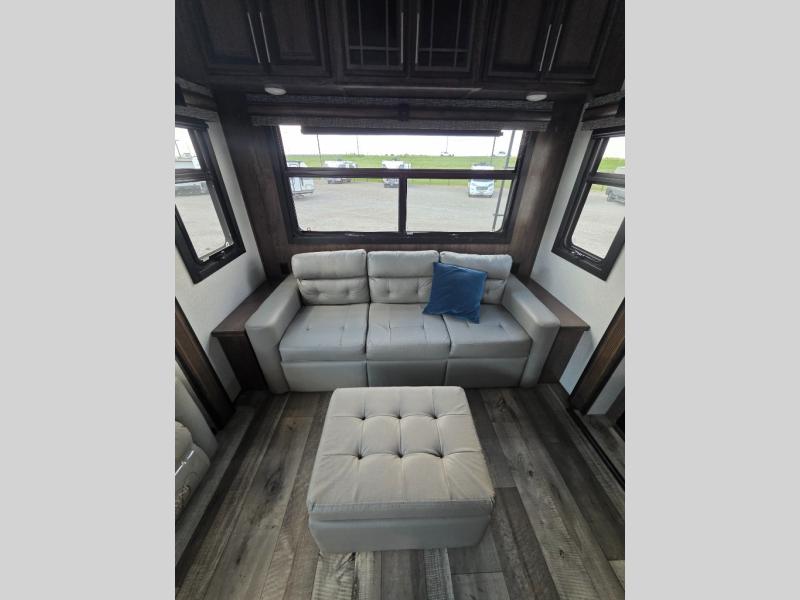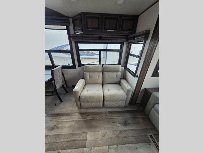 With any Durango Gold fifth wheels by KZ you will have flexible, puncture resistant, and reflective Tufflex roofing material, six-sided aluminum framing, and a heated, insulated and enclosed underbelly to travel all year long. Each model features a fully-vented attic system with two attic vents providing vital escape routes for unwanted moisture, and the Durango Towing package which includes a 2" towing receiver hitch with 4-pin wire harness connection, a 3,000 lb. tow rating, and 300 lb. hitch rating. The lithium-ready charging station includes a dual converter allowing you to flip a switch to choose between lithium or lead batteries. The interior offers outstanding features such as theater seating with cupholders, a USB plug, heat, massage and power recline/decline, an under-mount bathroom stainless steel sink with waterfall faucet, bedroom cabinetry with built-in hamper, and a Gold's 70" x 80" walk-around electric-tilt king bed with underbed drawers for extra storage. The list keeps going, choose your favorite Durango Gold today for luxury full-time traveling!