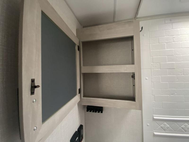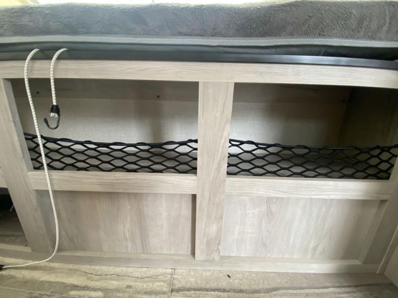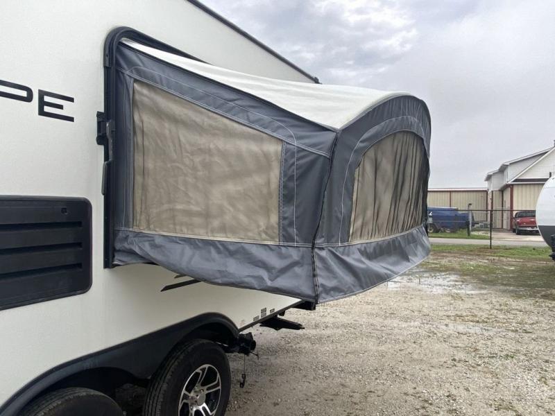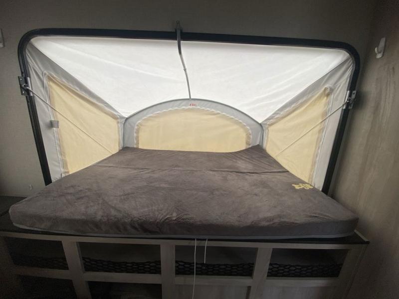 Pack up the family and head to your favorite state park in this comfortable expandable unit. There are two tent beds and convenient storage under one bed for your bags. The kids can convert the sofa and booth dinette to sleeping space at night, and everyone can clean up each day in the full bath. Preparing meals will be a snap with a two burner cooktop and a microwave oven, and there is a pantry for dry goods.