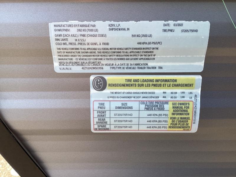 Used 2021 KZ Sportsmen 231FKKSE Travel Trailer