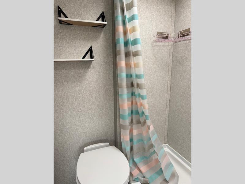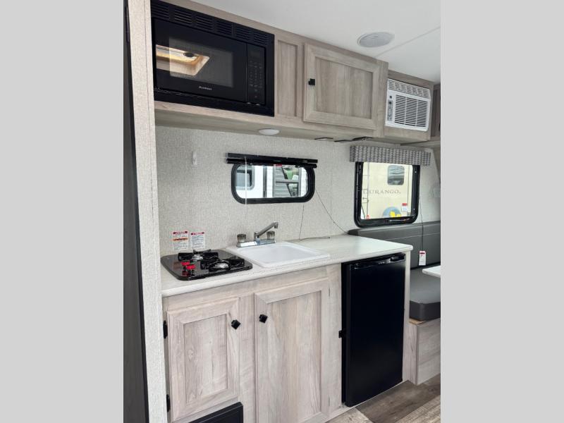 Head to your favorite campsite with this travel trailer! It features a sofa to relax on after a fun day outdoors and a 54" dinette to enjoy your meals at, as well as convert into a sleeping space. The corner bathroom has a toilet and a shower for you to freshen up in each morning and a closet next to it to use as you wish. The kitchen is equipped with everything you will need to whip up a delicious home cooked meal including a microwave for popcorn at night. You can grab a chair from the trunk door and relax underneath the 9' awning too!