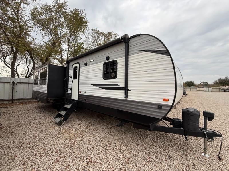 LIKE NEW 2022 K-Z SPORTSMEN 333KBKLE, FREE DELIVERY & SETUP!! SUPER CLEAN. IS A RV LOADED WITH LUXURY!! 38 LONG. 2 PRIVATE BEDROOMS, 3 XL SLIDE. COLD A/C. QUEEN MASTER SUITE. PRIVATE REAR ROOM W/ BUNKS & CLOSET. DINETTE & A SLEEPER SOFA. FRONT PRIVATE BEDROOM. LARGE LIVING AREA WITH THEATER SEATING & TRIFOLD SLEEPER SOFA. ELECTRIC FIREPLACE & BIG FLAT SCREEN TV. BEAUTIFUL KITCHEN with residential refrigerator, STAINLESS STEEL APPLIANCES, and LOTS OF CABINET STORAGE. 4 SEASONS PACKAGE WITH UPGRADED INSULATION. DESIGNED FOR YEAR-ROUND COMFORT IN HOT OR COLD CLIMATES. COLD A/C UNITS. 30AMP POWER. OUTDOOR STORAGE. OUTDOOR KITCHEN, SOLID STEP ENTRY. DUAL AWNINGS WITH LED LIGHTS. LUXURY FEEL THROUGHOUT!! ONLY 8130 UVW. OUR PRICE: $25,995. WE HAVE MULTIPLE RV TO CHOOSE FROM!! We are located in KENNEDALE, TX. We show RVs 7 DAYS A WEEK BY APPOINTMENT. Call BRET 8178050067 or AMY 8176584633. FREE DELIVERY TO ALL 48 STATES. WE INSPECT & GO THROUGH ALL TRAILERS TO ENSURE OUR CUSTOMERS ARE 100% SATISFIED.¡SE HABLA ESPAÑOL!